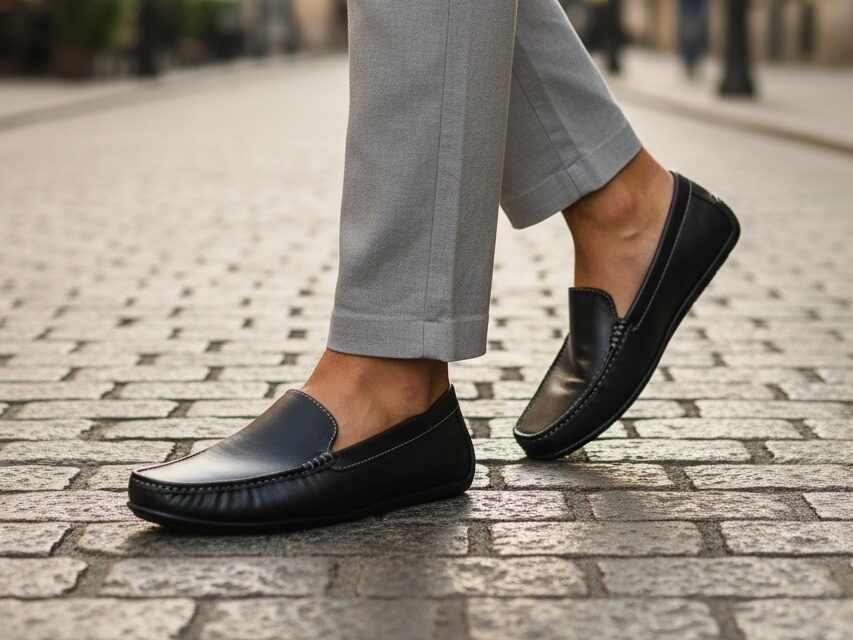 かかとを覆うようなデザインで、ドライビングシューズの特徴を再現。
