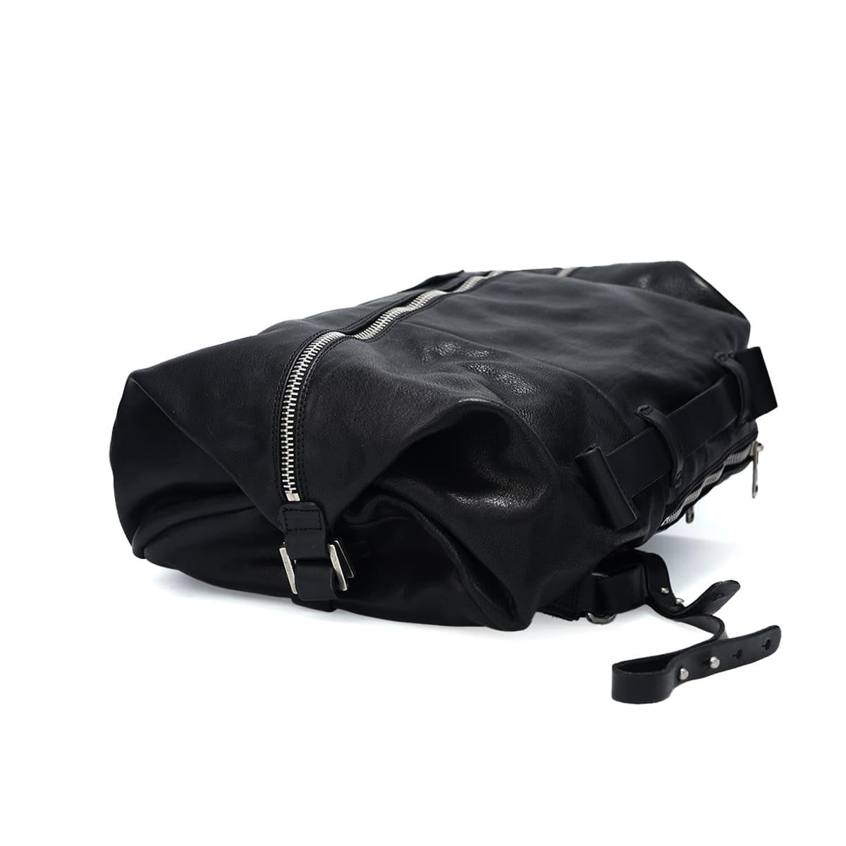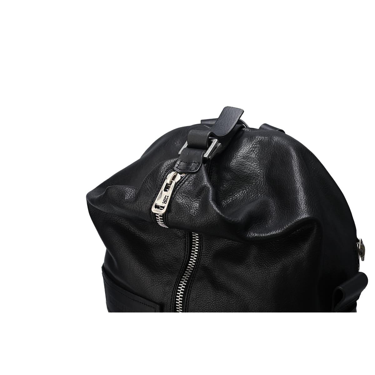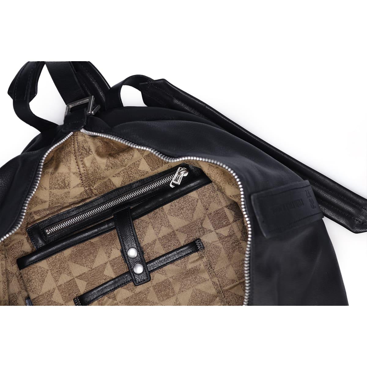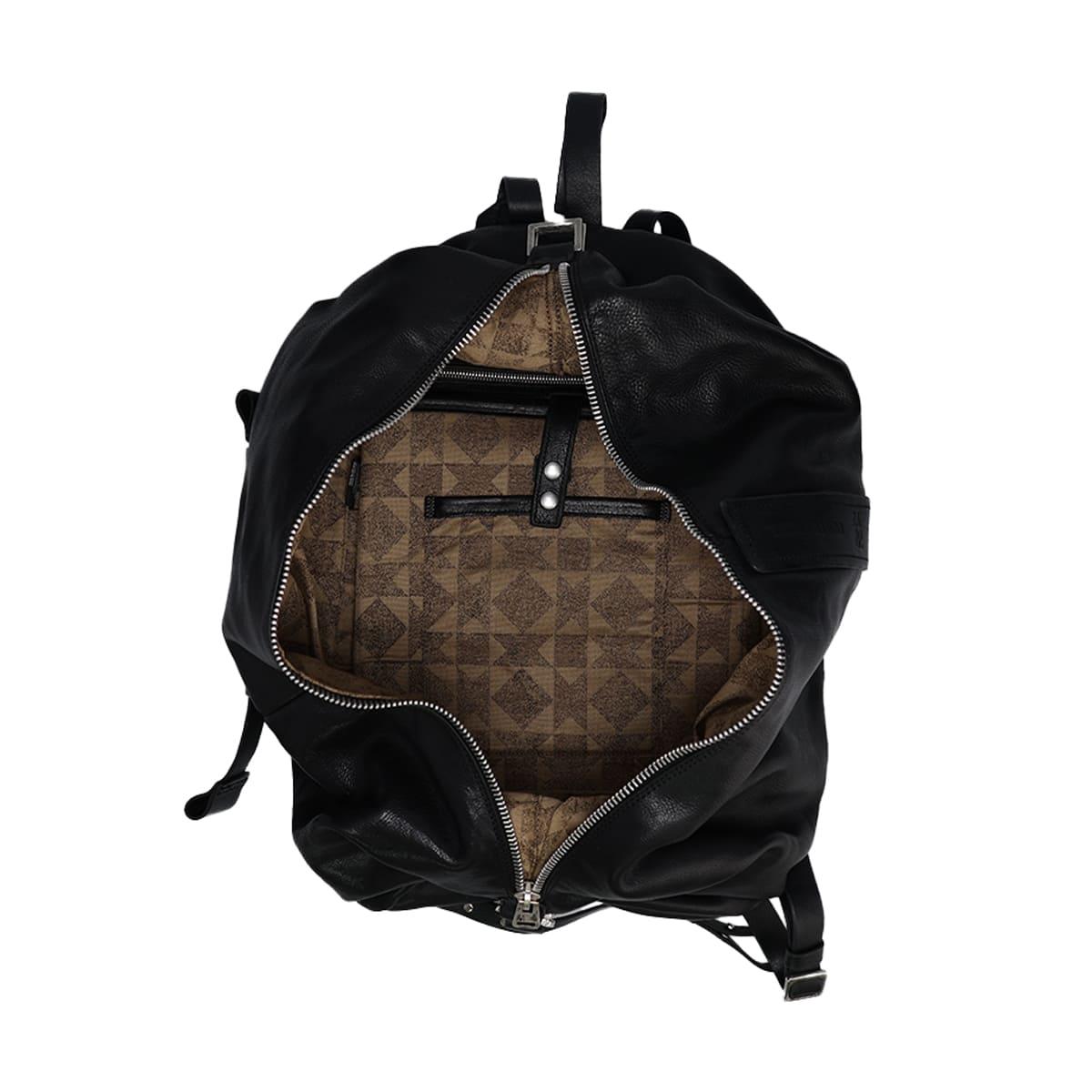 フロントに大胆にあしらわれたジップは、デザインのアクセントであると同時に、メインコンパートメントががばっと大きく開く実用性を追求した設計です。
