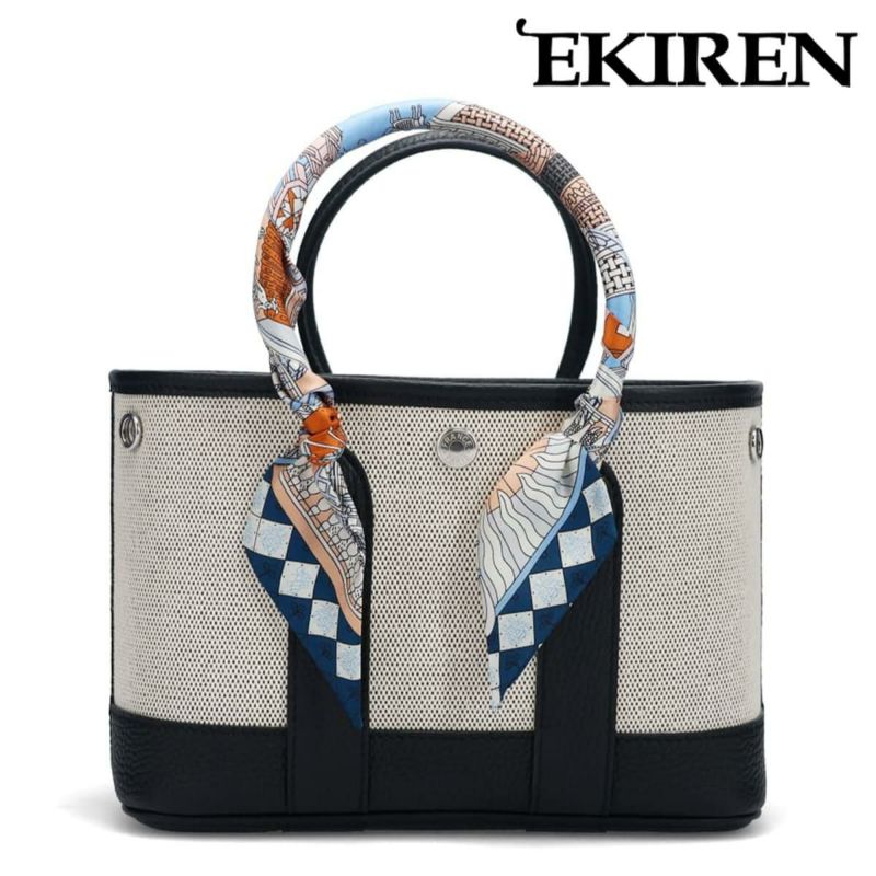 EKIREN History 兵庫県神戸市から生まれたオリジナルブランド『EKIREN(エキレン)』 熟練の職人が作り出す鞄、財布、そして小物は、選りすぐりの上質な本革、国産の姫路レザーとイタリアのTOGO革のみを使用。 繊細で器用な手仕事、そしてこだわりが込められた作品の数々は、お客様からも高い評価をいただいています。 確かな品質と散りばめられたアクセントを感じてもらいたい。 そんな気持ちを乗せて「EKIREN」は、丁寧な仕事を追求し続けます。 Item Information ▼ブランド EKIREN / エキレン Made in Japan / 日本製 ▼品番 gp-002 ▼色 ブラック エトゥープ グリーン グレージュ ラクダ ▼特徴 上質な帆布と本革を組み合わせた、スタイリッシュで実用的なミニトートバッグ。 ハンドルにはアクセントとなるスカーフが巻かれており、シンプルなデザインに華やかさを添えます。 小ぶりなサイズ感ながらもガバっと開いて荷物を入れやすく、デイリーからちょっとしたお出かけまで活躍。 サイドのスナップボタンを留めたり外したりすることで、シルエットが変わり、気分に合わせてかわいい表情を楽しめます。 ▼サイズ W25×H16×D10cm ※上記のサイズは当店での参考サイズ目安でございます。ブランドや木型によって表記サイズの寸法は異なります。 ▼素材 レザー、帆布 ▼在庫について 当店は、店頭同時販売のため、売り切れの場合がございます。 その際は、当店の都合によりキャンセルとさせて頂きますが、ご了承下さいますよう、お願い致します。 ▼その他 お使いのパソコンのモニターの状況、撮影時の状況により、写真と実際の商品の色合いが多少異なる場合がございます。入荷の際すでにお箱が多少破損したもの、汚れのあるものがございます。 摩擦や水濡れによって衣類に色移りする場合がございます。十分にご注意ください。 こちらの商品は天然素材を使用しておりますため、もともとのシワ、色むら、小さな穴等がある場合がございます。こちらは天然皮革の味であり、風合いでございますので、不良品ではございません。 ▼実店舗との同時運営に伴うご注意点 当店は実店舗との同時運営のため、試着時についた履きジワ等があることがございます。その都度ケアをしておりますが、シワが深い場合はメールにてご連絡させていただくことがございます。その際、基本的には、ご了承をいただいてからの発送とさせていただいております。あしからずご了承くださいませ。