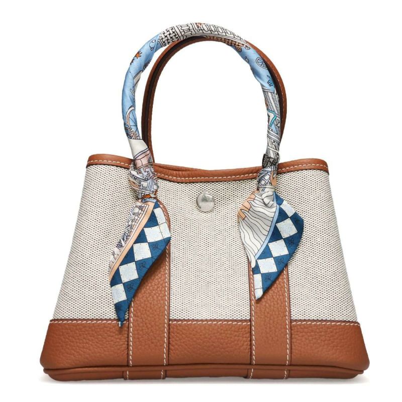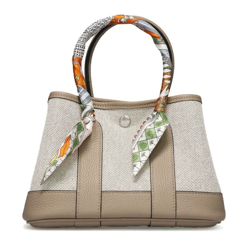 ミニハンドバッグ Mini Hand Bag 上品さと実用性を兼ね備えたコンパクトトート。 ※スカーフの色・柄についてはご指定いただけません。ご了承ください。 Detail 上質な帆布と本革を組み合わせた、スタイリッシュで実用的なミニトートバッグ。 ハンドルにはアクセントとなるスカーフが巻かれており、シンプルなデザインに華やかさを添えます。 小ぶりなサイズ感ながらもガバっと開いて荷物を入れやすく、デイリーからちょっとしたお出かけまで活躍。 サイドのスナップボタンを留めたり外したりすることで、シルエットが変わり、気分に合わせてかわいい表情を楽しめます。 Color Variation ブラック エトゥープ グリーン グレージュ ラクダ