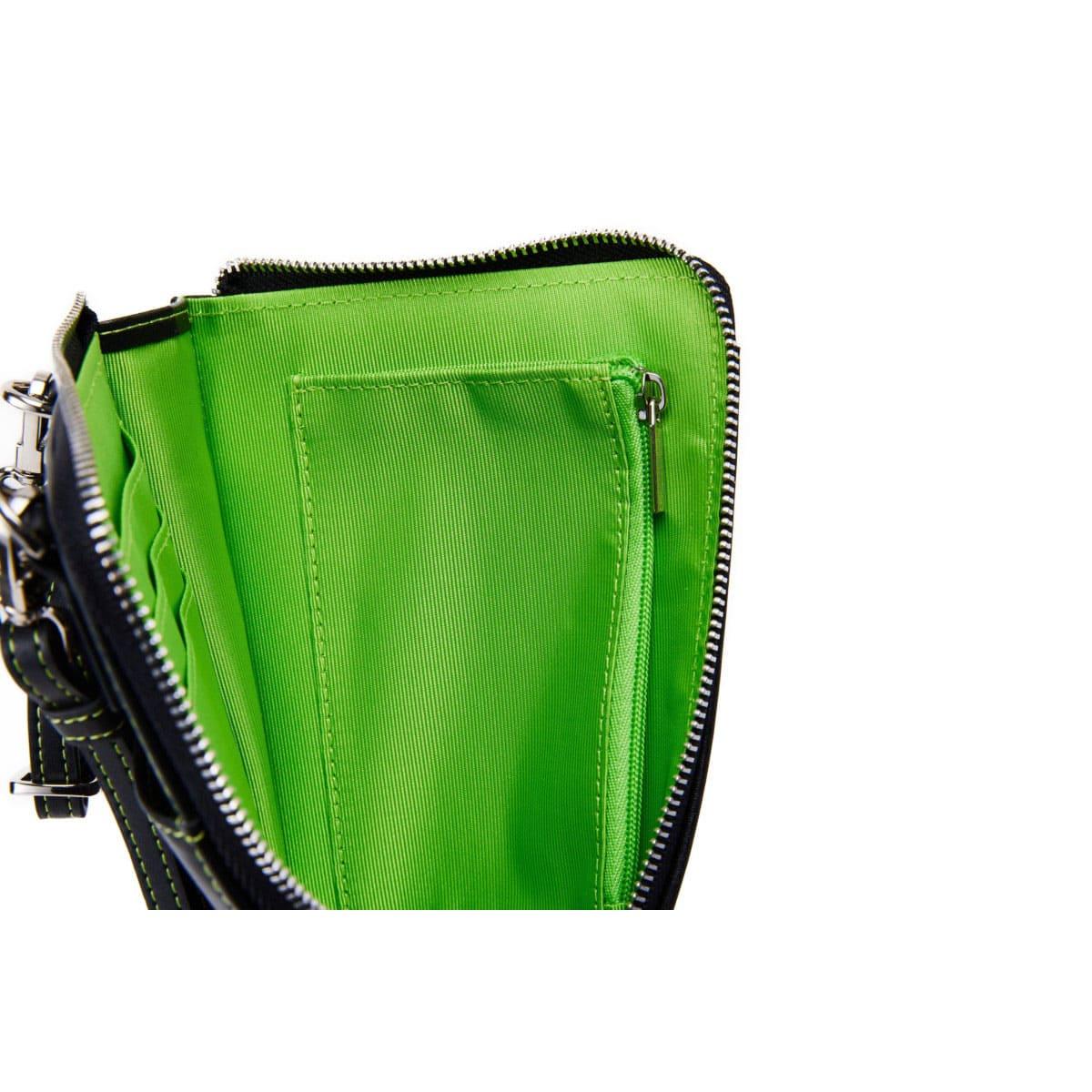 シンプルながらロゴとカラーの調和が際立ち、ブラックはモードで都会的に、グリーンは洗練された遊び心をプラス。