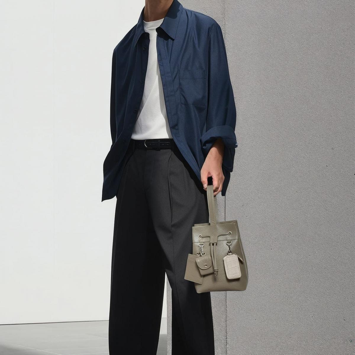 鞄にはトートバッグをメインに、靴と同じく飽きのこないスッキリとしたデザインを採用し、エキゾチックレザーを使用する事で遊び心とリッチ感をプラス。