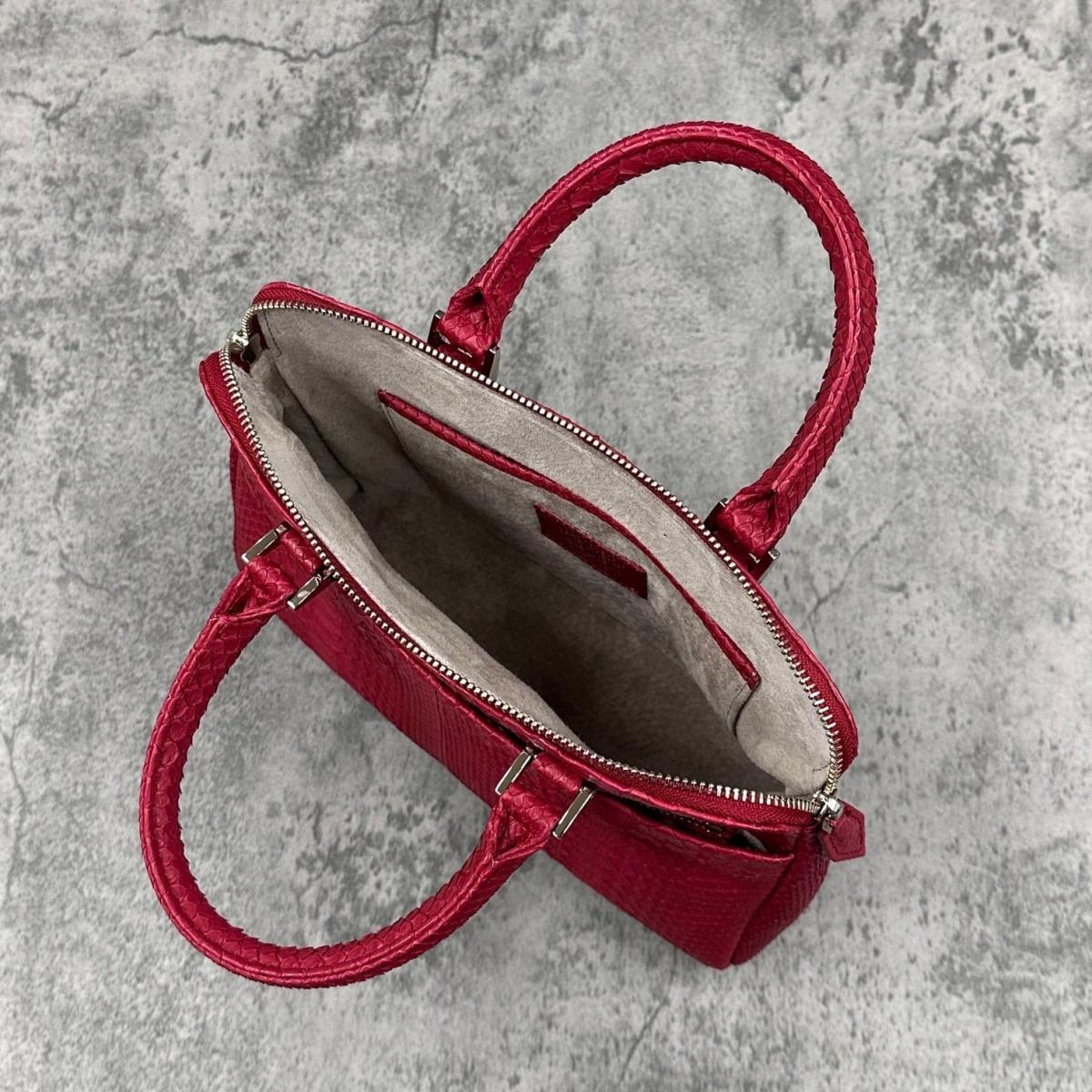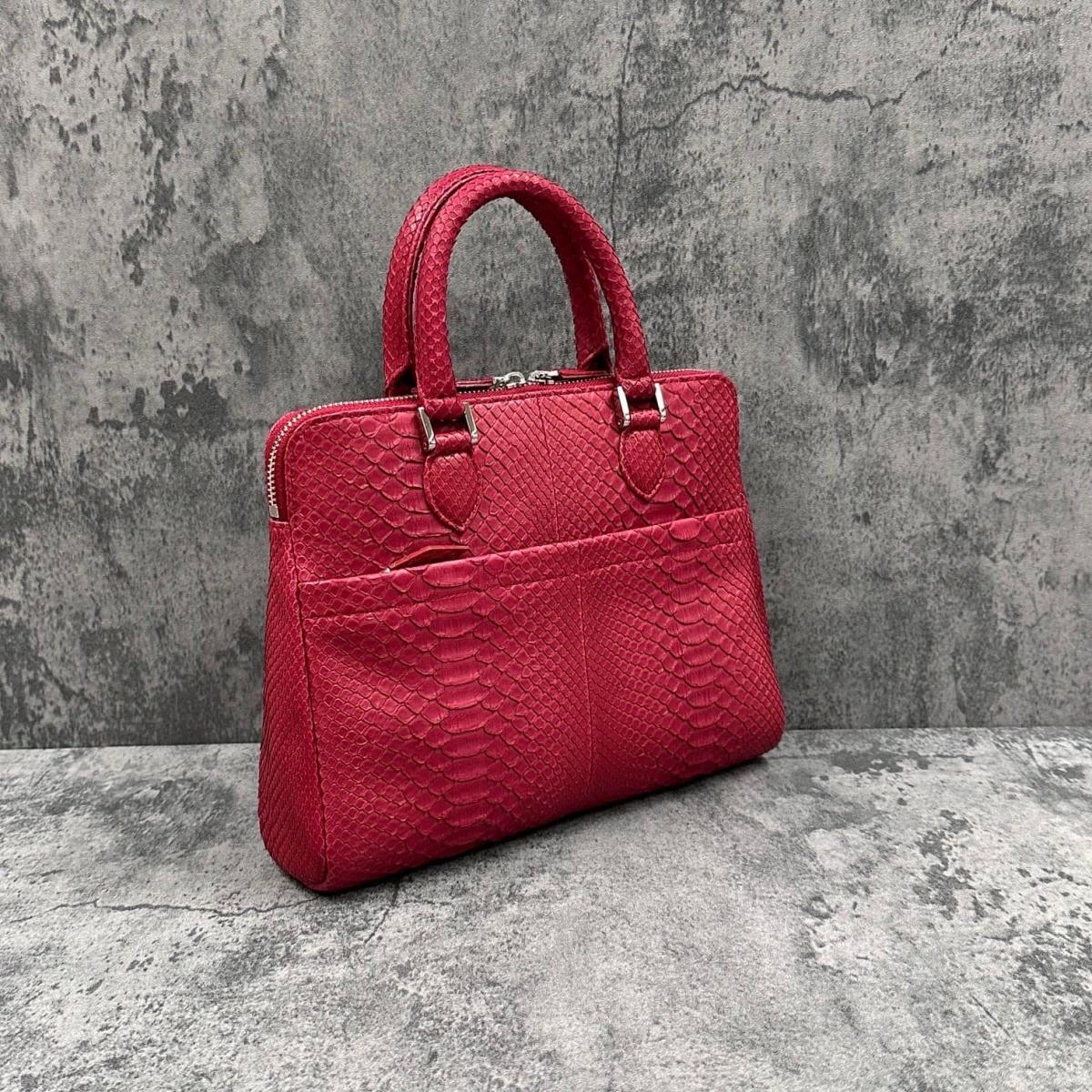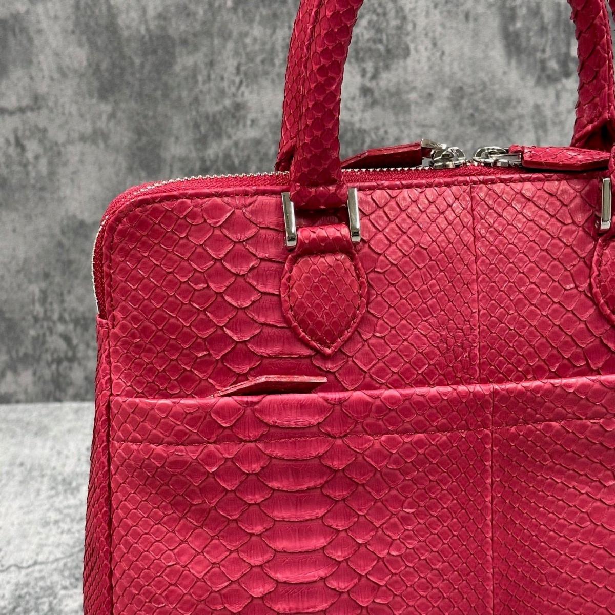 鮮やかなレッドカラーとパイソン特有の鱗模様が目を引き、手に取った瞬間から上質な存在感を放ちます。