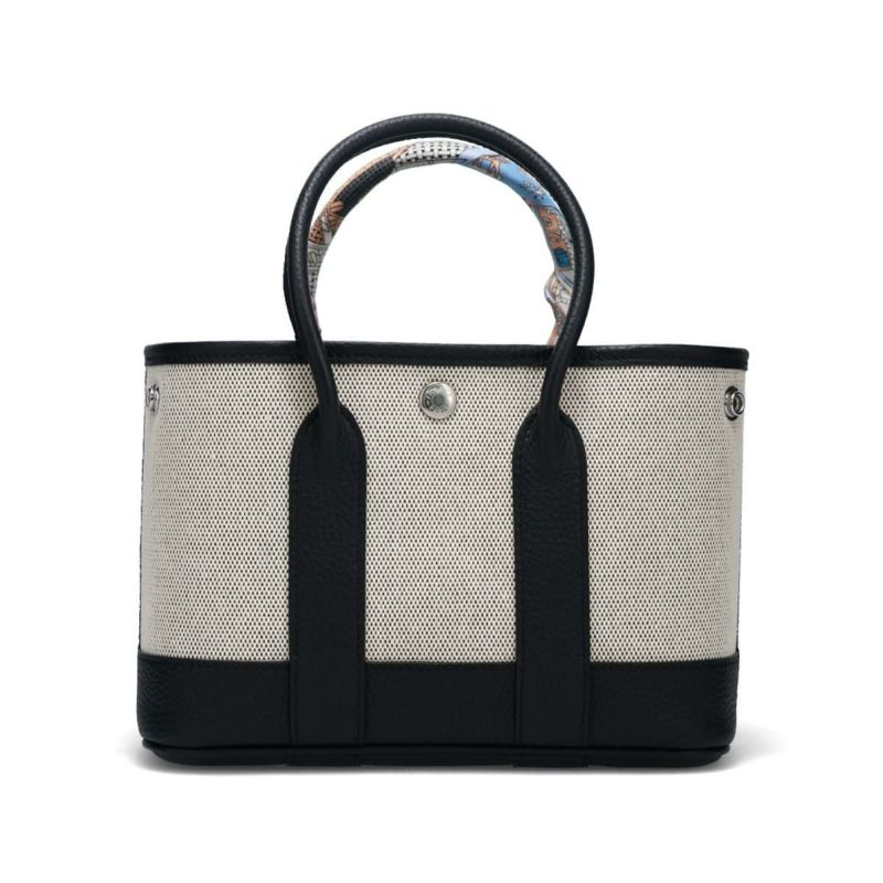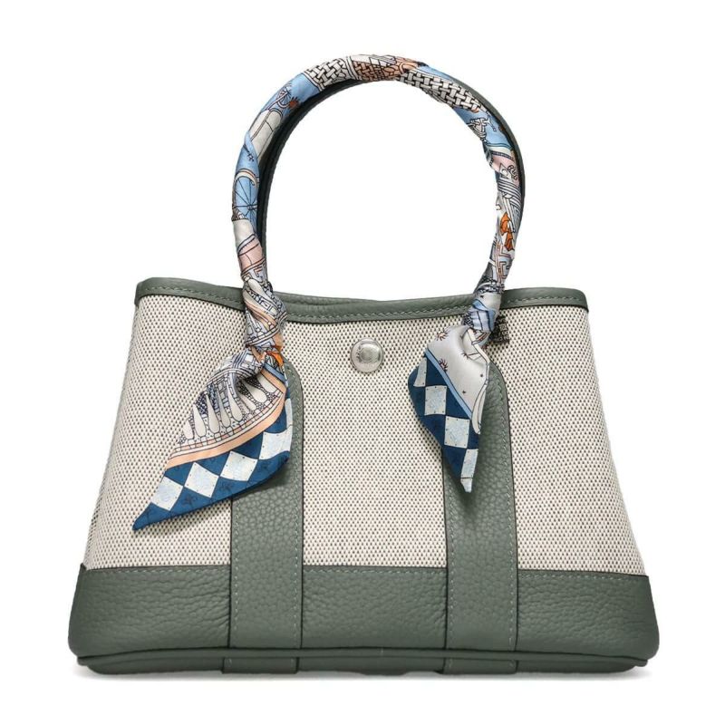 ミニハンドバッグ Mini Hand Bag 上品さと実用性を兼ね備えたコンパクトトート。 ※スカーフの色・柄についてはご指定いただけません。ご了承ください。 Detail 上質な帆布と本革を組み合わせた、スタイリッシュで実用的なミニトートバッグ。 ハンドルにはアクセントとなるスカーフが巻かれており、シンプルなデザインに華やかさを添えます。 小ぶりなサイズ感ながらもガバっと開いて荷物を入れやすく、デイリーからちょっとしたお出かけまで活躍。 サイドのスナップボタンを留めたり外したりすることで、シルエットが変わり、気分に合わせてかわいい表情を楽しめます。 Color Variation ブラック エトゥープ グリーン グレージュ ラクダ