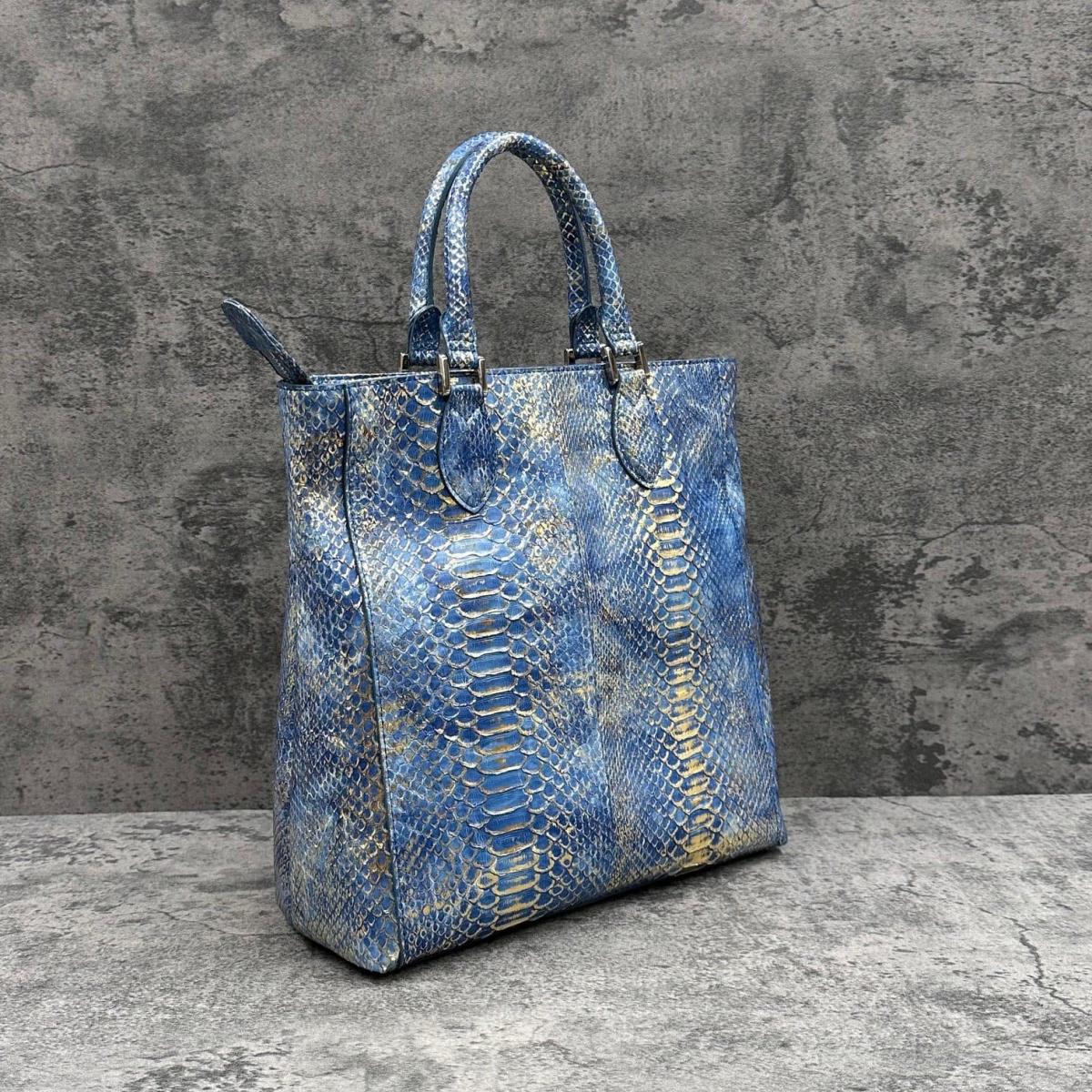 5. レザック パイソンル トートバッグ ゴールド/ブルー 国産(日本製) LE'SAC libia-spc