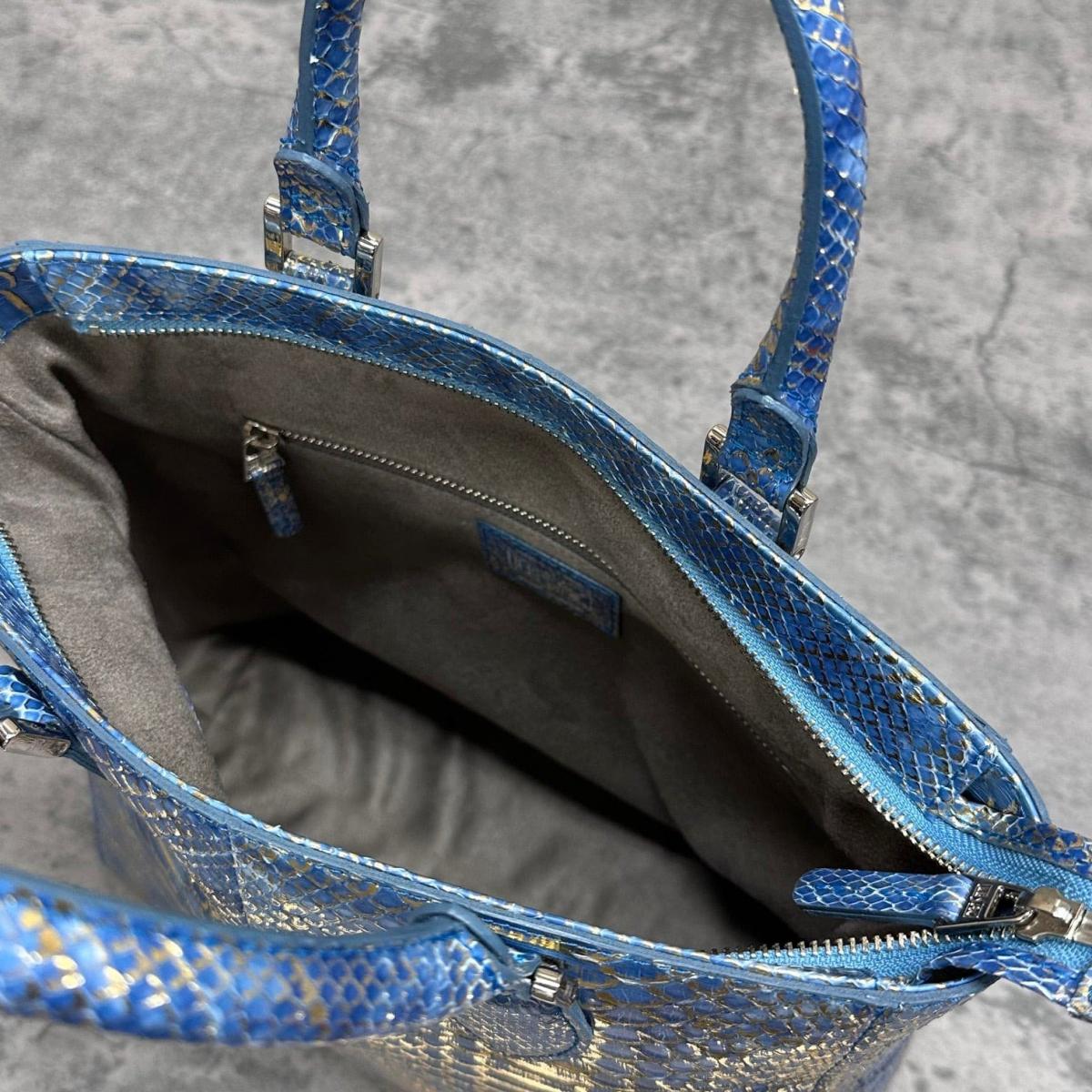 6. レザック パイソンル トートバッグ ゴールド/ブルー 国産(日本製) LE'SAC libia-spc