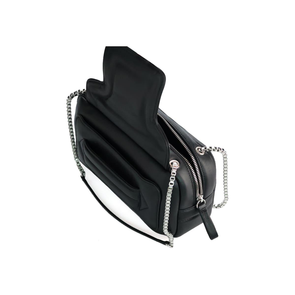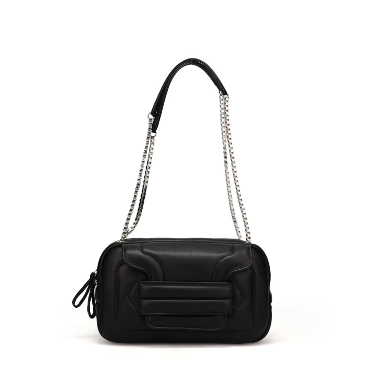 メタリックなチェーンストラップがアクセントとなり、エレガントなスタイルにもモードな装いにもマッチ。