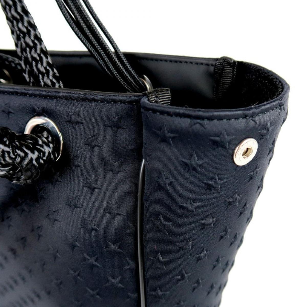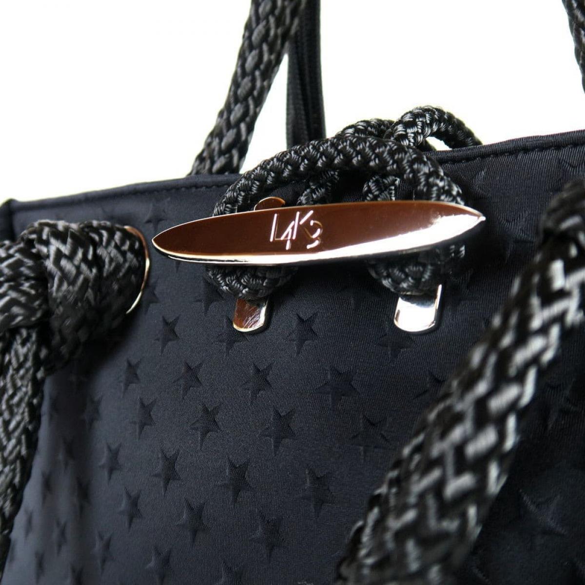 シンプルなブラックボディに映えるSTARエンボスと手作りディンギーロープが、日常のコーディネートに洗練された印象を加える万能バッグです。