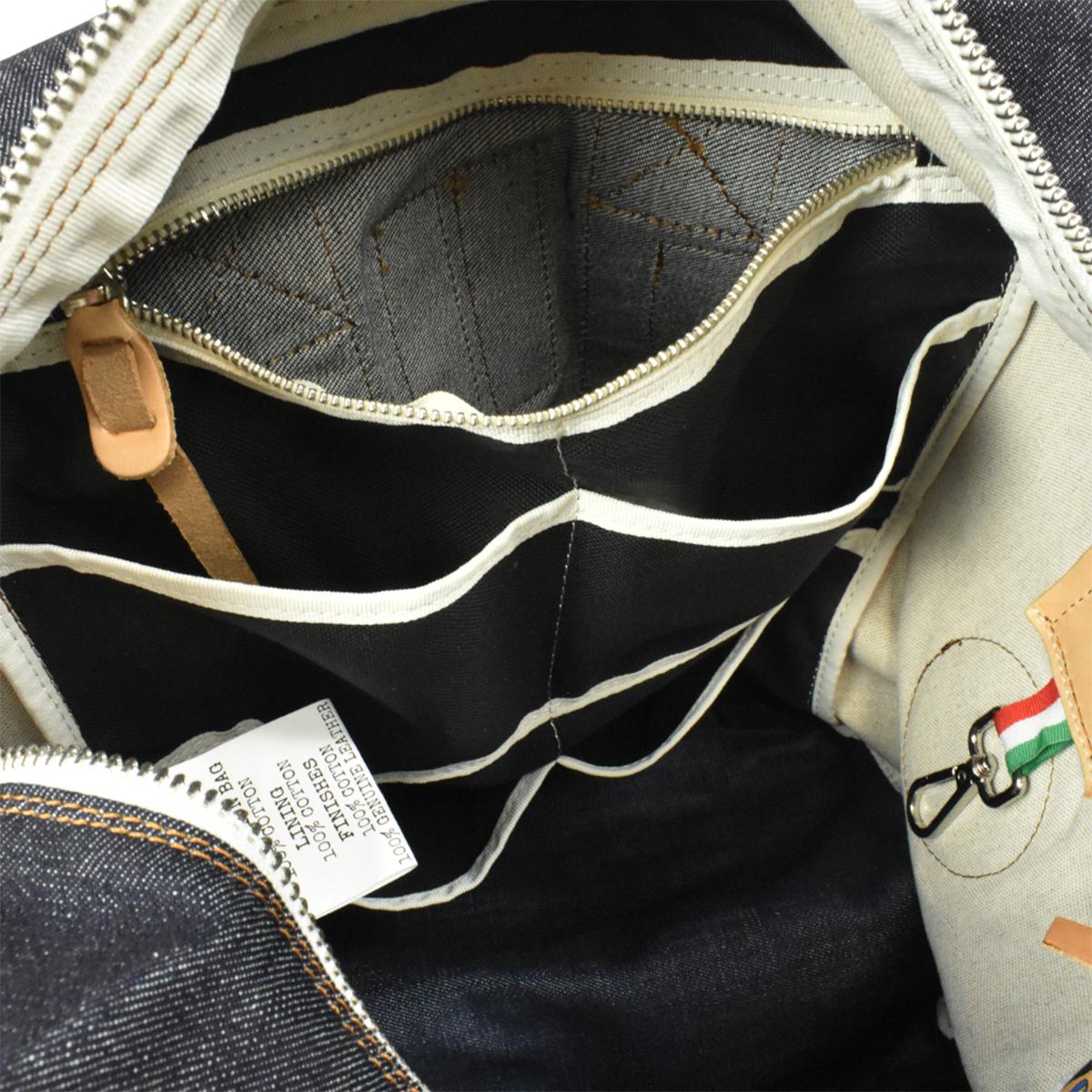 内側には6つのポケットと、メタルジッパー付きの大型ポケットを備え、書類や小物を用途別に整理可能。