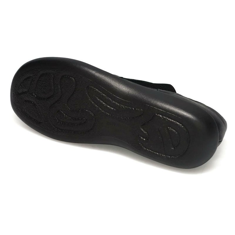 ヒール高は約2.0cmと低めに設計されており、安定感のある歩行をサポート。ワイズはゆったりとした4E設計で、幅広の方にも快適にお履きいただけます。