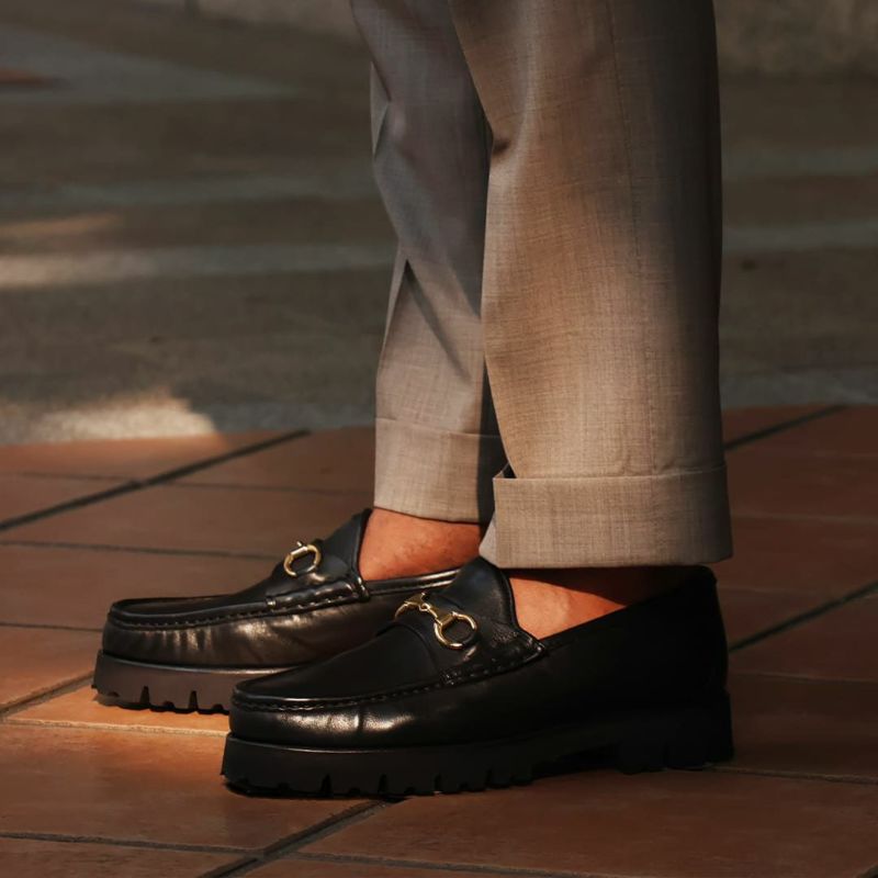 100%イタリア製・本物・高品質に徹底的にこだわる歴史あるブランドの、トレンド感あふれるモデル。遊びゴコロをくすぐる大人の上質厚底ローファー。