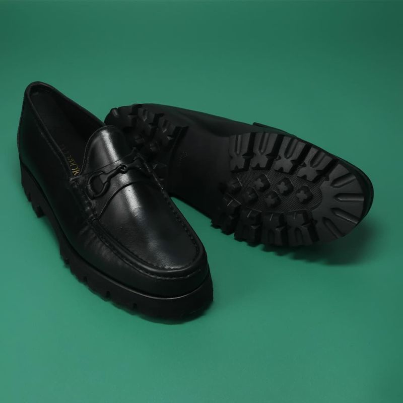 伝統的なラウンドトゥ木型を採用した美しいフォルムのビットローファー。