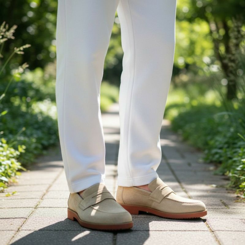 アッパーには、通気性・撥水性に優れた豚革スエードのパピーレザーを使用。