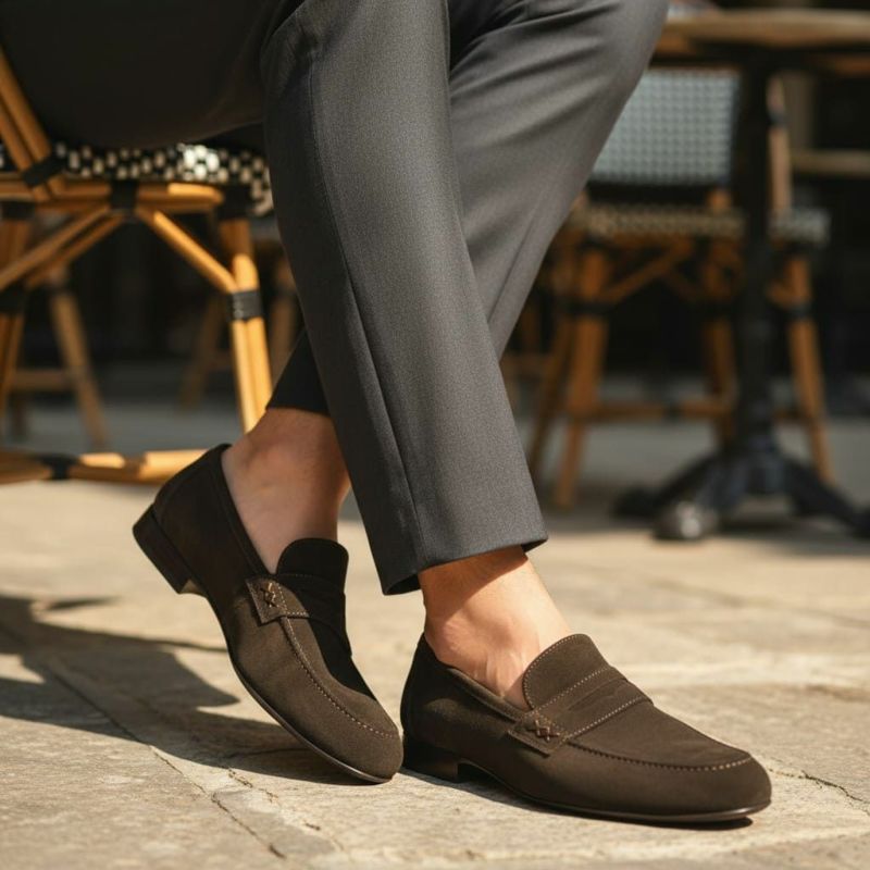 ローファー Loafers クインクラシコの日本製/Made in Japanモデル。 オンでもオフでも履いていただける汎用性の高い一足です。 Detail アッパーはスエードレザーを採用。 スエードならではの上品な光沢感と柔らかさがあります。 かかとは外れにくいよう、小ぶりな設計。 日本製ならではの日本人のかかとにフィットしやすいヒールです。 アウトソールは、合成ラバーを使用。 突起のある底パターンが滑りやすい地面でグリップ性を発揮します。 Color Variation ダークブラウン ネイビー ブラック