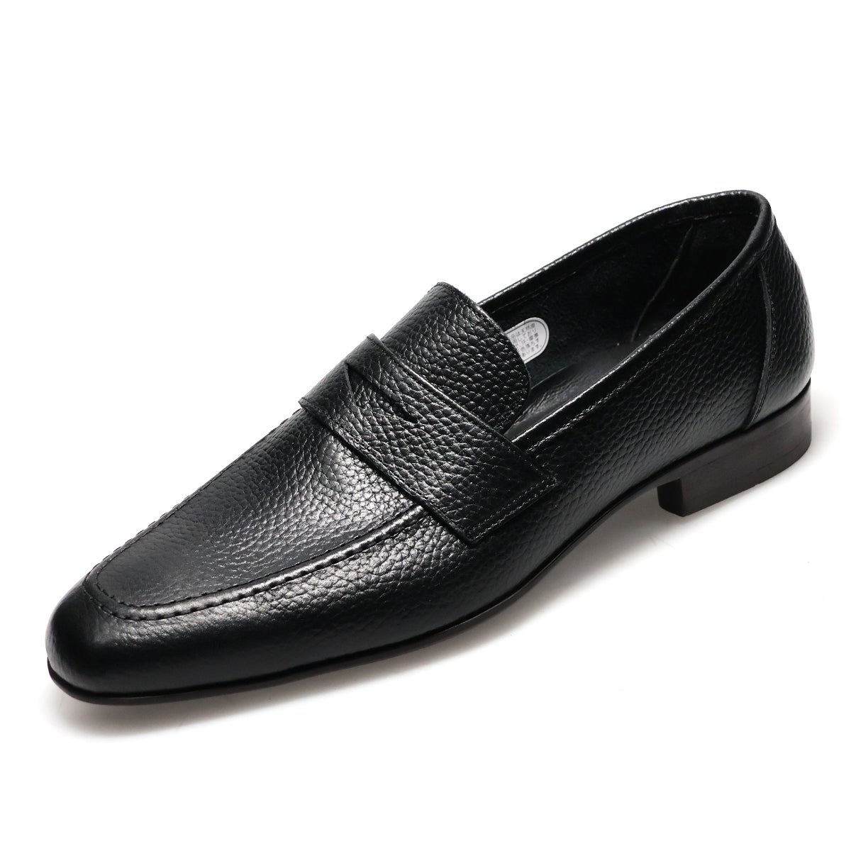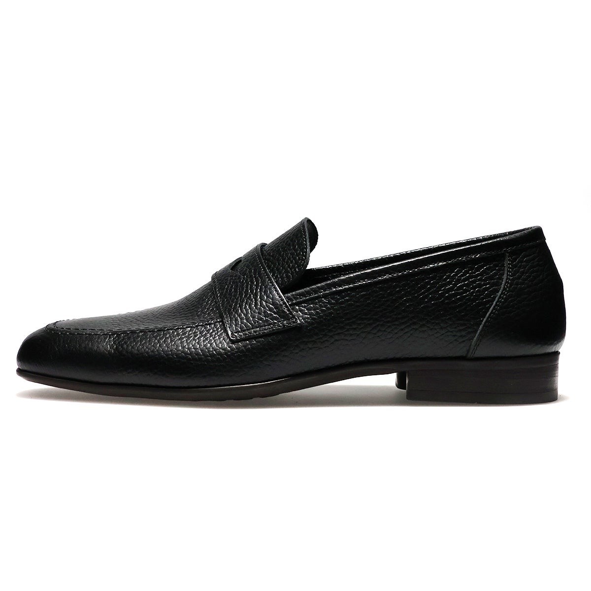 足のサイズ27.5でサイズ44を購入しましたが多少踵が浮いてしまう為にワンサイズ落としました。 サイズ感はピッタリで、つま先の窮屈感もほぼなくスムーズに履ける洒落たローファーです。 シボ感もしっとりとした大人の装いに良く似合うと思います。 甲高ですが甲の部分も高いのでローファーの脱ぎ履きも楽チンです。 黒ですがマットな感じですのでテカテカ系が好みではい方におすすめです! サイズ交換の際、スタッフさんの迅速な対応をしていただいた事ありがとうございました。