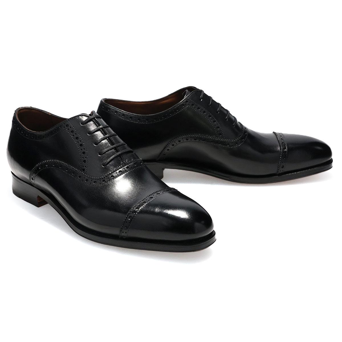 スクエアトゥの端正な表情が印象的な、内羽根パンチドキャップトゥ。