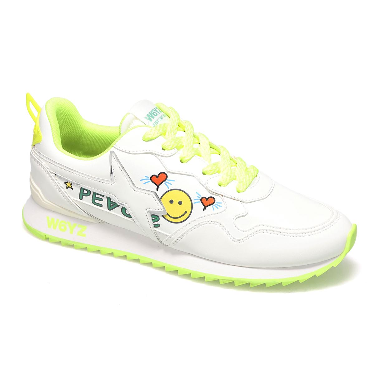 ネオンカラーとポップなイラストが足元を彩る「PEACE」モデル。