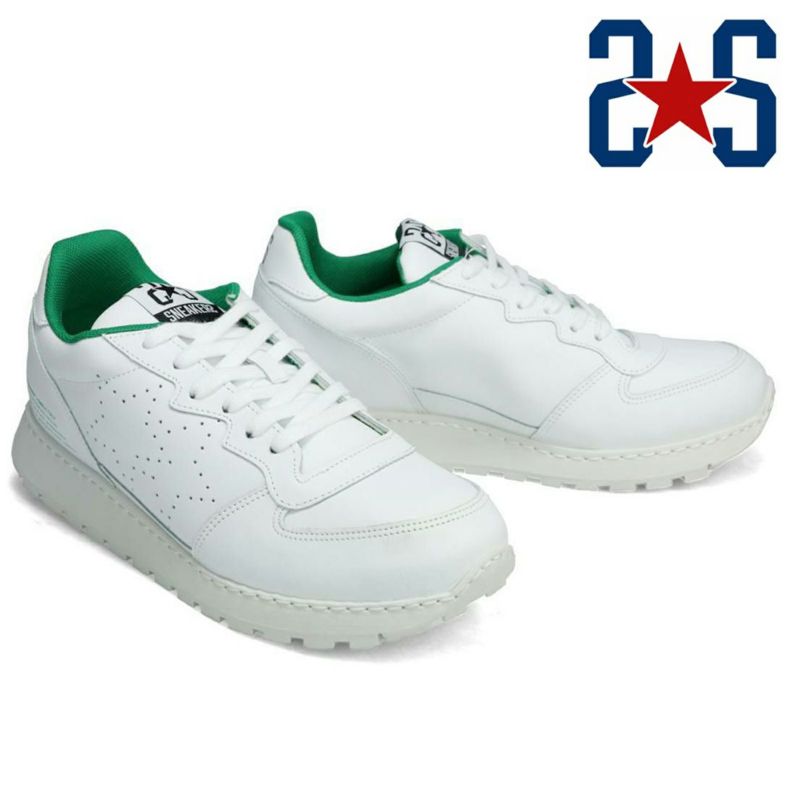 2STAR History 2☆STARはイタリアのマフラ社が手掛けるスニーカーブランド。 シューズファクトリーが多いことで有名なブーリア州バリーで1950年代に創業。 60年以上の長い歴史のなかで培われた技術と、繊細な仕事で作られたスニーカーは、ブランドスタート後、ヨーロッパ全土で10万足以上を販売し、イタリアでも「Luisa via Roma」や「GIO MORRETI」など有名セレクトショップでも展開されています。 Item Information ▼ブランド 2STAR / ツースター Made in Italy / イタリア製 ▼品番 2s210w ▼色 ホワイト/グリーン ▼特徴 全体を白で統一したミニマルなデザイン。 側面の星形パンチングは、遊び心のある軽やかな印象を与え、足元を彩ります。 程よいソール厚みが脚を長く見せ、スタイルアップ効果も発揮します。 クッション性に優れた厚底ソールと厚めのインソールが、地面からの衝撃を吸収し足への負担を軽減。 長時間履いても疲れにくく、快適な歩行をサポートします。 ▼サイズ 35|22.5cm 36|23.0cm 37|23.5cm 38|24.0cm 39|24.5cm ※上記のサイズは当店での参考サイズ目安でございます。ブランドや木型によって表記サイズの寸法は異なります。 ▼素材 アッパー素材 : レザー ソール素材 : ゴム ▼在庫について 当店は、店頭同時販売のため、売り切れの場合がございます。 その際は、当店の都合によりキャンセルとさせて頂きますが、ご了承下さいますよう、お願い致します。 ▼その他 お使いのパソコンのモニターの状況、撮影時の状況により、写真と実際の商品の色合いが多少異なる場合がございます。入荷の際すでにお箱が多少破損したもの、汚れのあるものがございます。 摩擦や水濡れによって衣類に色移りする場合がございます。十分にご注意ください。 こちらの商品は天然素材を使用しておりますため、もともとのシワ、色むら、小さな穴等がある場合がございます。こちらは天然皮革の味であり、風合いでございますので、不良品ではございません。 ▼実店舗との同時運営に伴うご注意点 当店は実店舗との同時運営のため、試着時についた履きジワ等があることがございます。その都度ケアをしておりますが、シワが深い場合はメールにてご連絡させていただくことがございます。その際、基本的には、ご了承をいただいてからの発送とさせていただいております。あしからずご了承くださいませ。