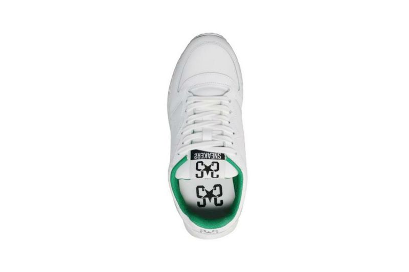 レザースニーカー Leather Sneakers 白を基調としたシンプルなデザインに、履き口のグリーンがアクセントになったスニーカー。 Detail 全体を白で統一したミニマルなデザイン。 側面の星形パンチングは、遊び心のある軽やかな印象を与え、足元を彩ります。 程よいソール厚みが脚を長く見せ、スタイルアップ効果も発揮します。 クッション性に優れた厚底ソールと厚めのインソールが、地面からの衝撃を吸収し足への負担を軽減。 長時間履いても疲れにくく、快適な歩行をサポートします。