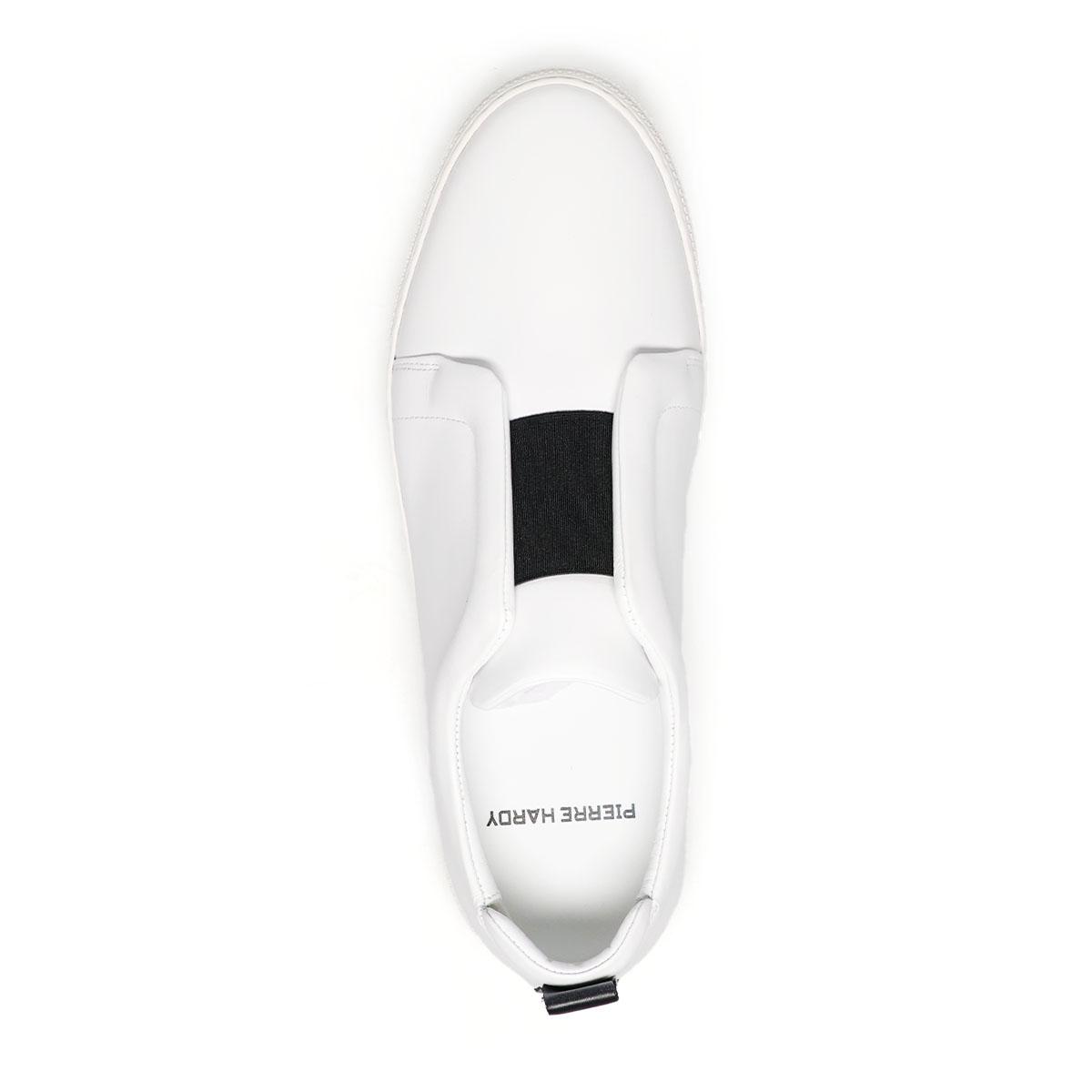 ピエールアルディを象徴する「スライダー」スニーカーは、シューレースを排したミニマルなデザインで、モダンな足元を演出。