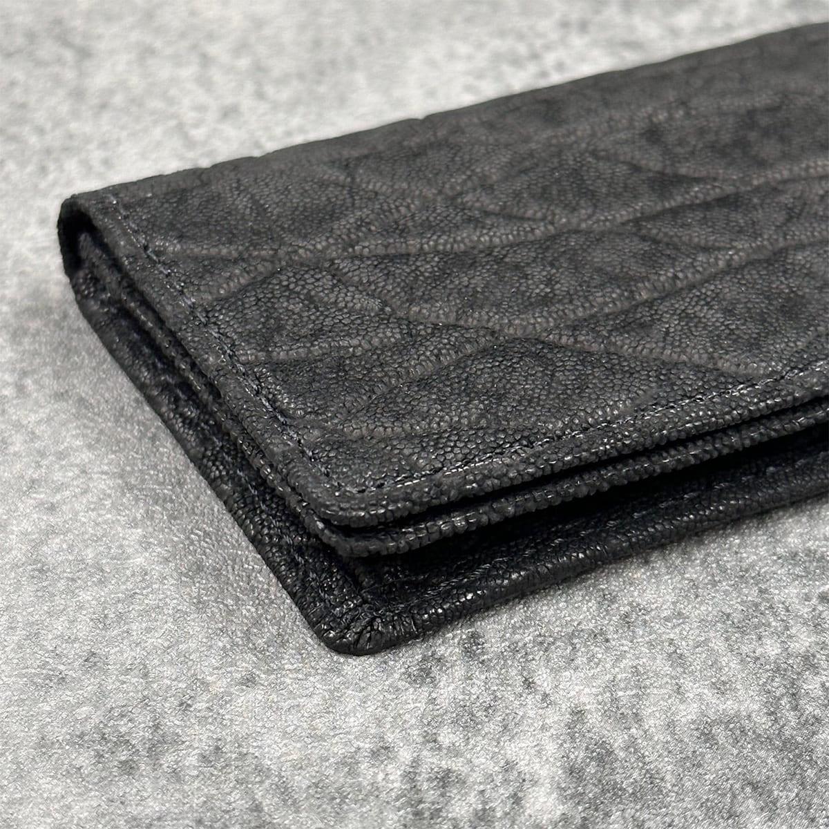 ▼特徴 深みのあるブラックカラーが、エレファントレザー特有の力強いシボを際立たせ、手元に凛とした存在感をもたらします。