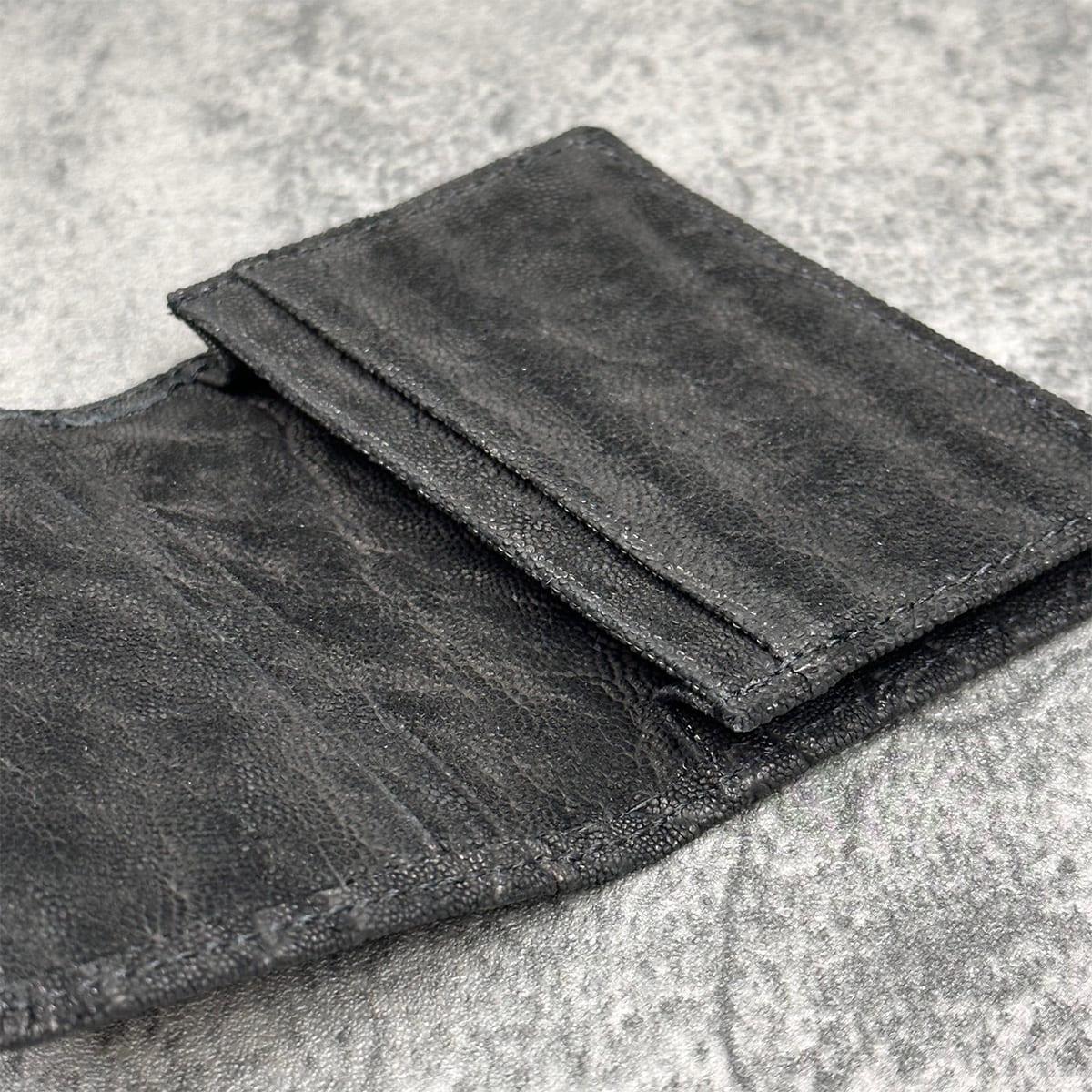 深みのあるブラックカラーが、エレファントレザー特有の力強いシボを際立たせ、手元に凛とした存在感をもたらします。