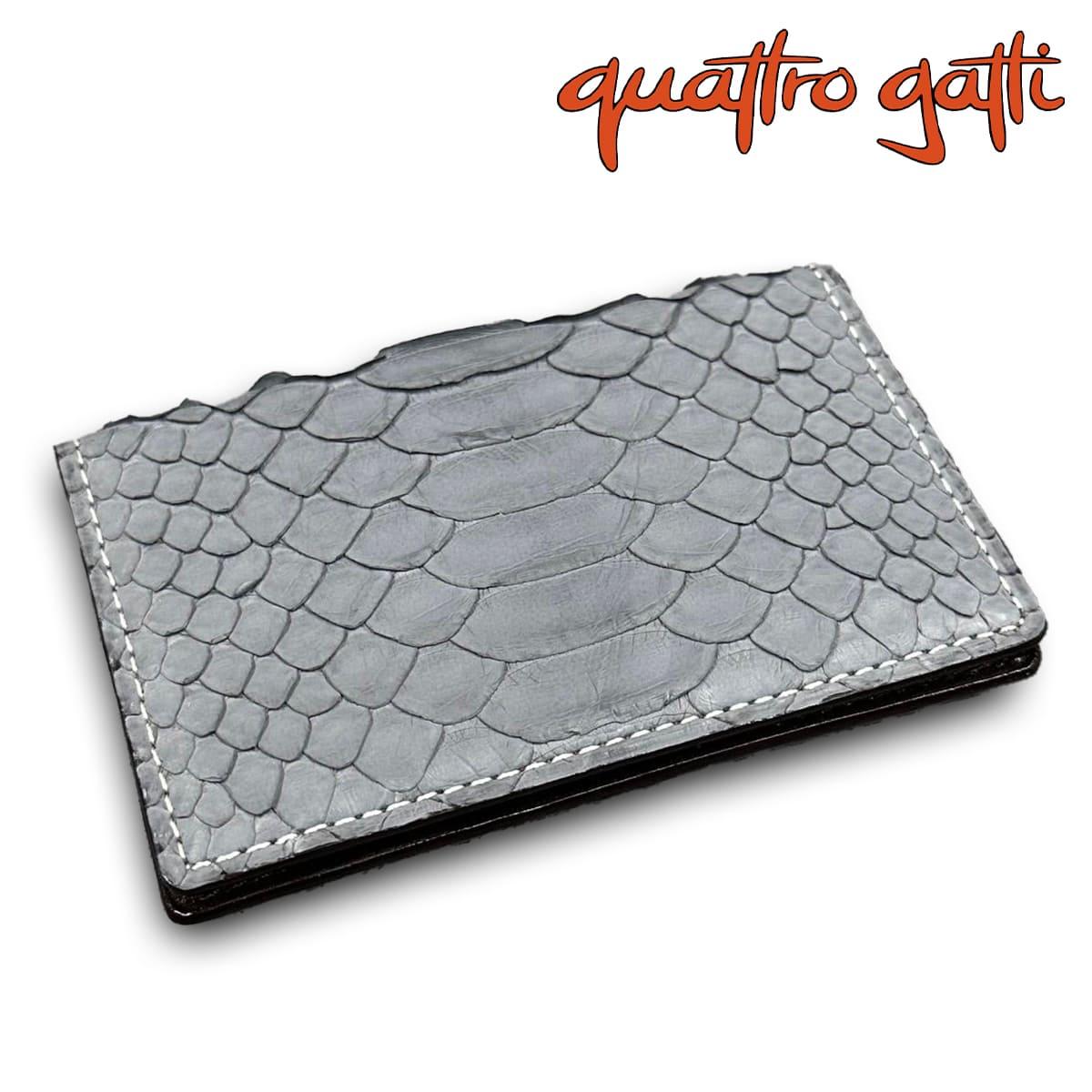 4. クアトロガッティ バッグ パイソン カード入れ (名刺入れ) グレー 国産(日本製) Quattro Gatti 8210