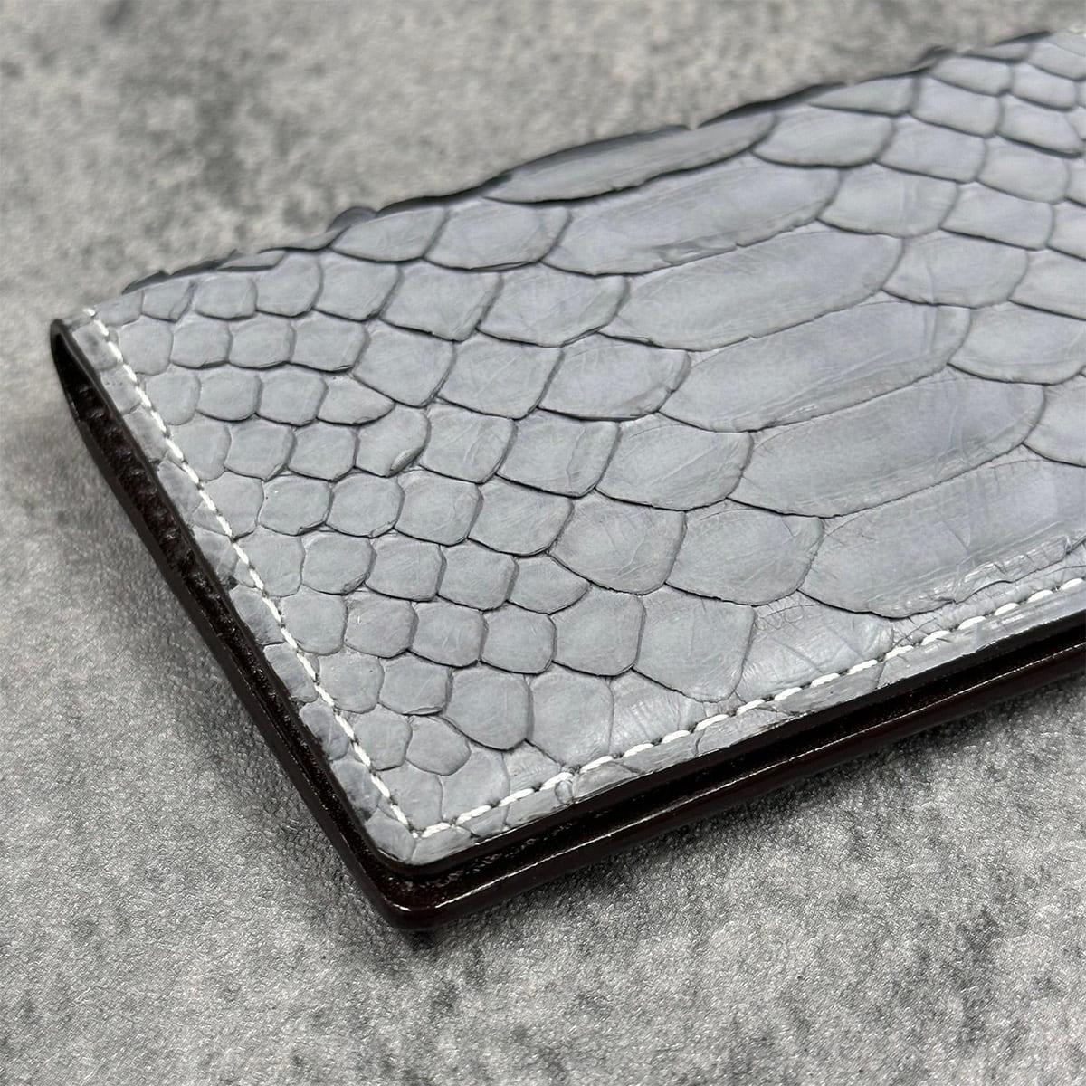 ▼特徴 パイソンならではの美しいウロコ模様を、上品なグレーカラーで仕上げることで、エキゾチックな表情の中に都会的で落ち着いた印象を与える一品にまとめました。