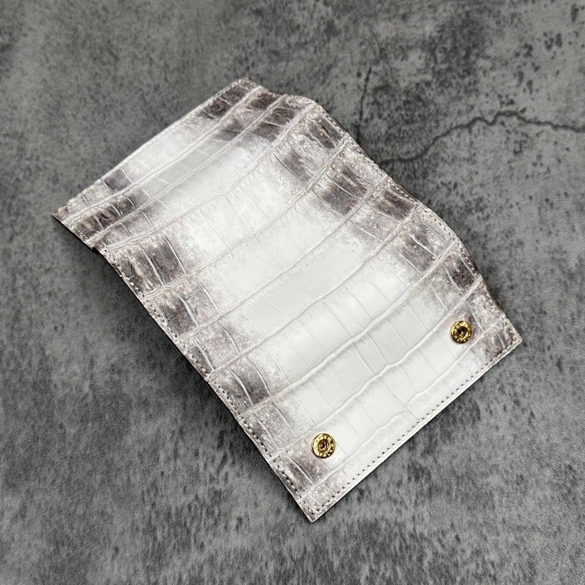 クロコダイルレザーのしっとりとした手触りと、ナチュラルカラー特有の柔らかく明るい艶が、手に取った瞬間から上品な存在感を放ちます。