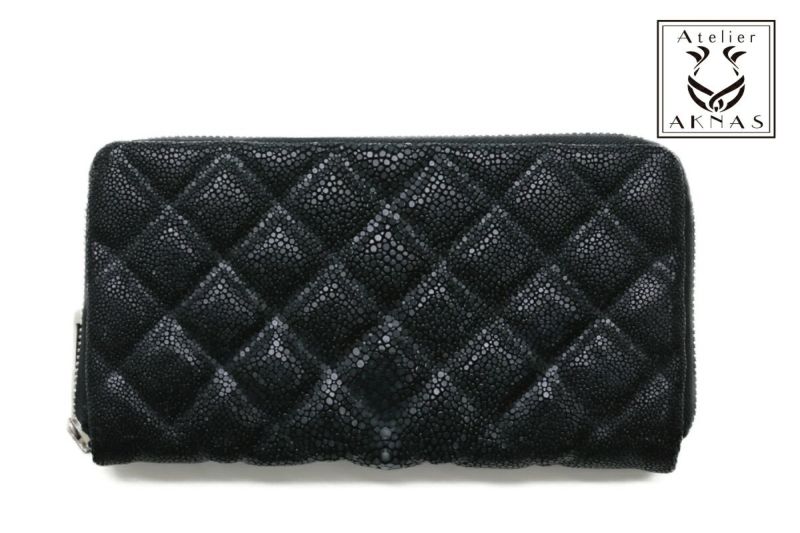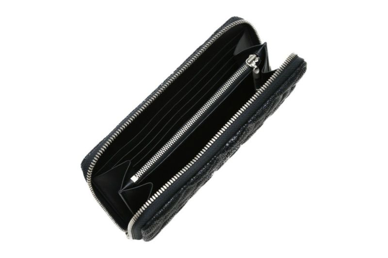 ▼特徴 キャビアのような輝きが美しいノワール(フランス語で「黒」の意)のエイ革「ガルーシャ」を、外装としてセレクトしたラウンドジップ長財布。