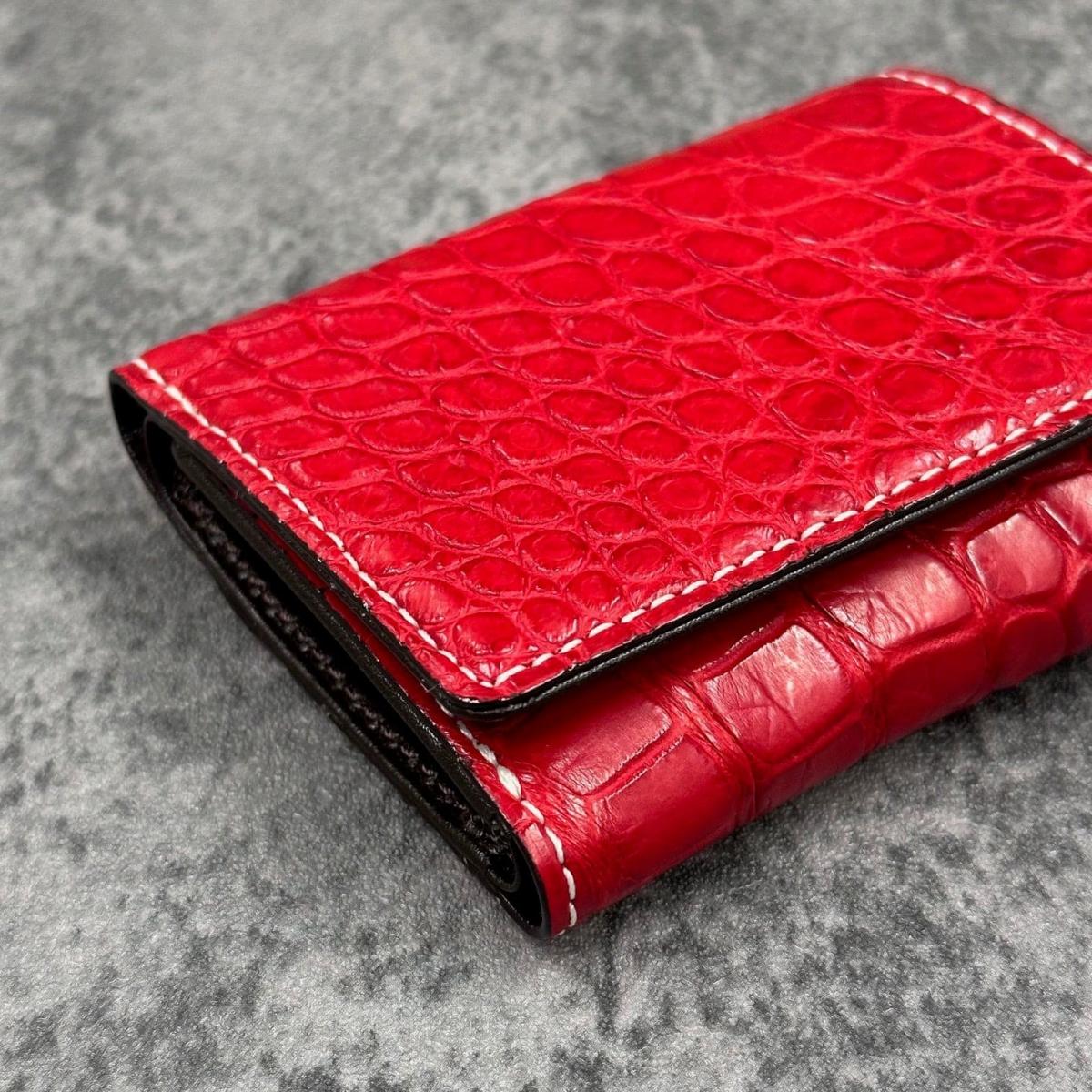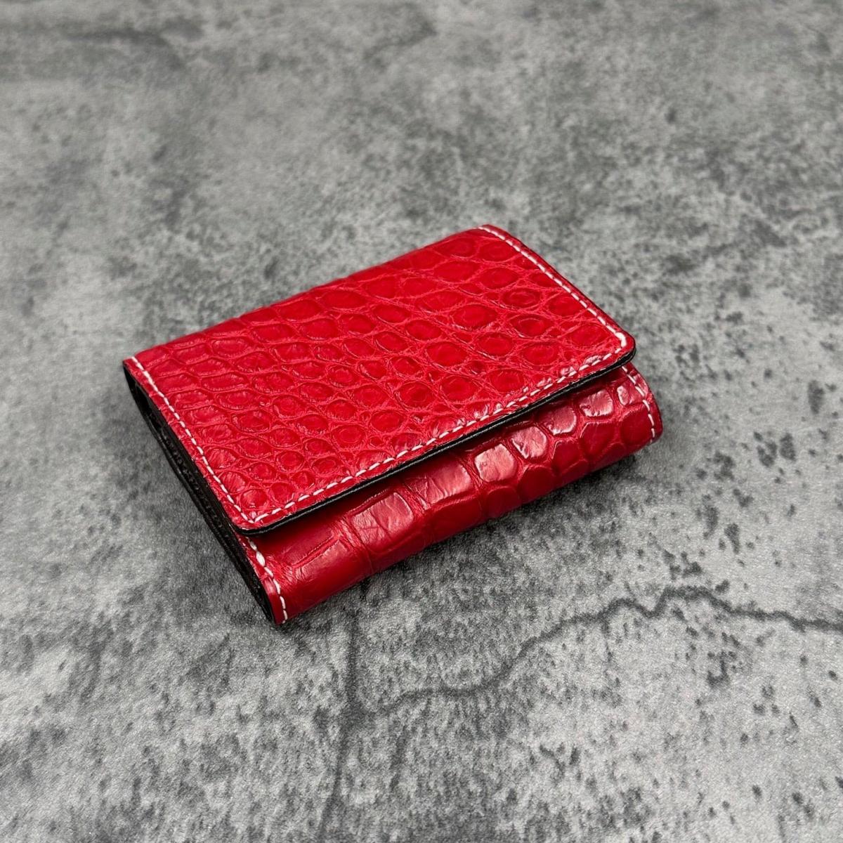 6. クアトロガッティ 財布 クロコダイル ミニ財布(三つ折り財布) レッド 国産(日本製) Quattro Gatti 8207