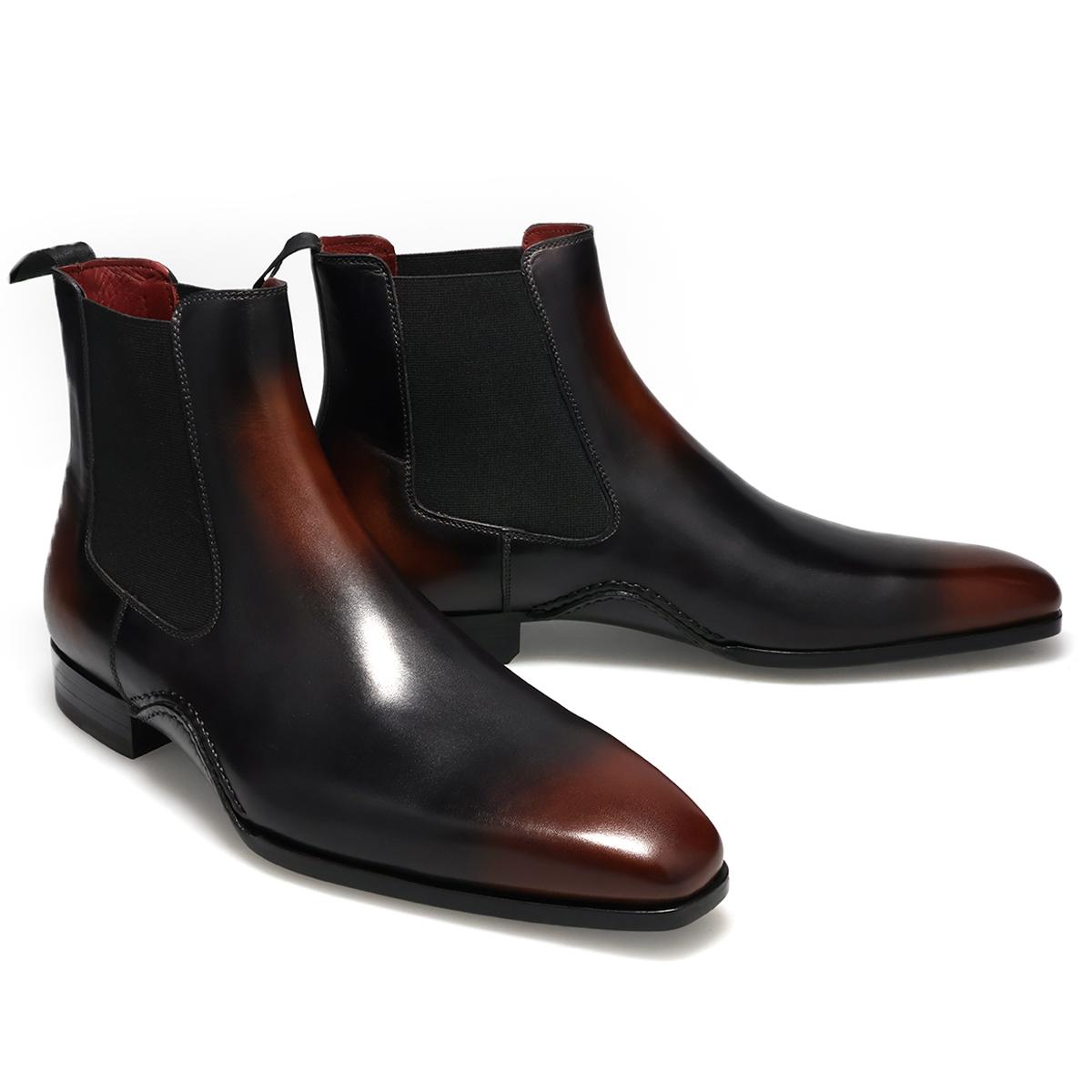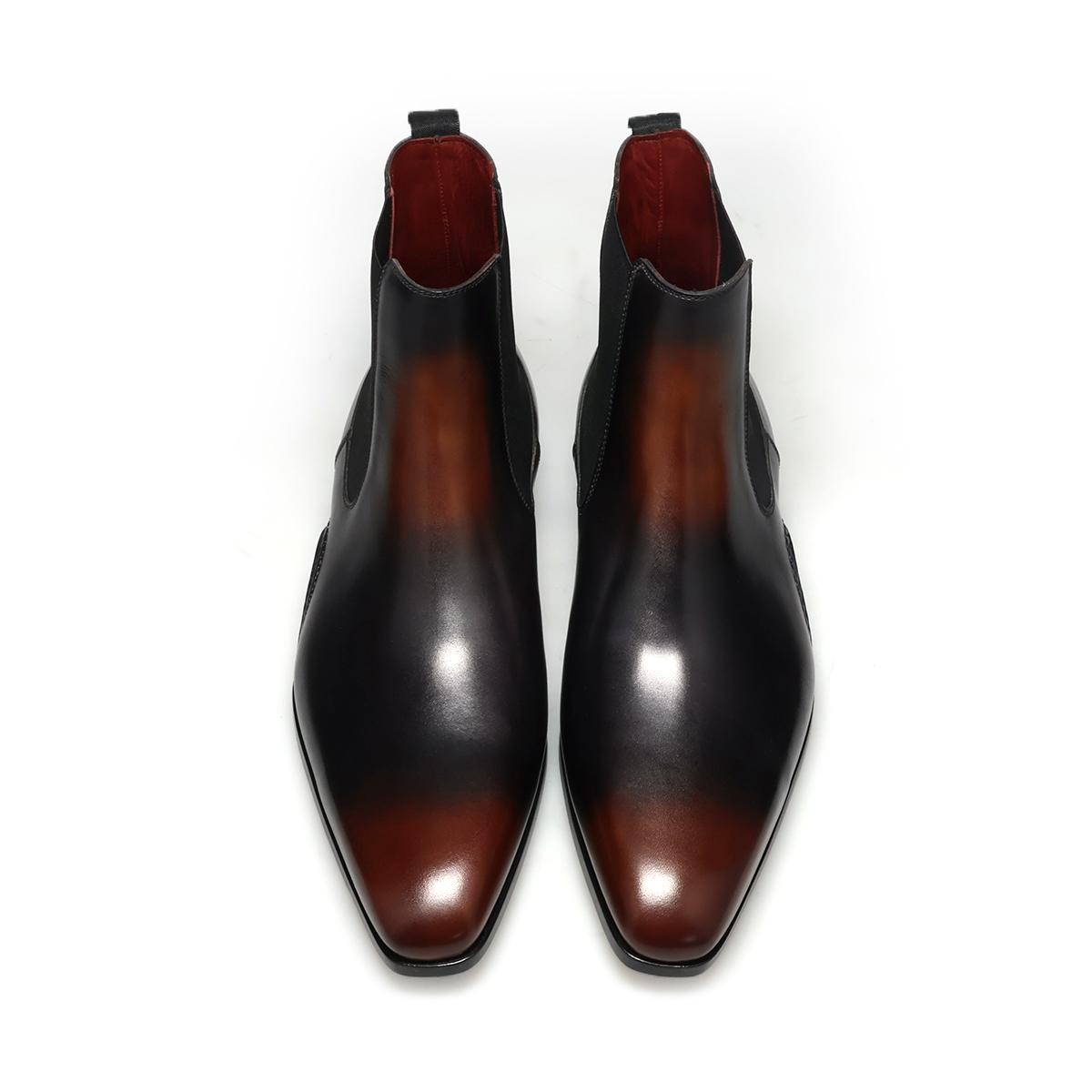 クラシックなチェルシーの輪郭に、深みのある色彩とわずかな揺らぎが加わり、伝統と現代性を同時に感じさせる表情豊かな一足に仕上がっています。