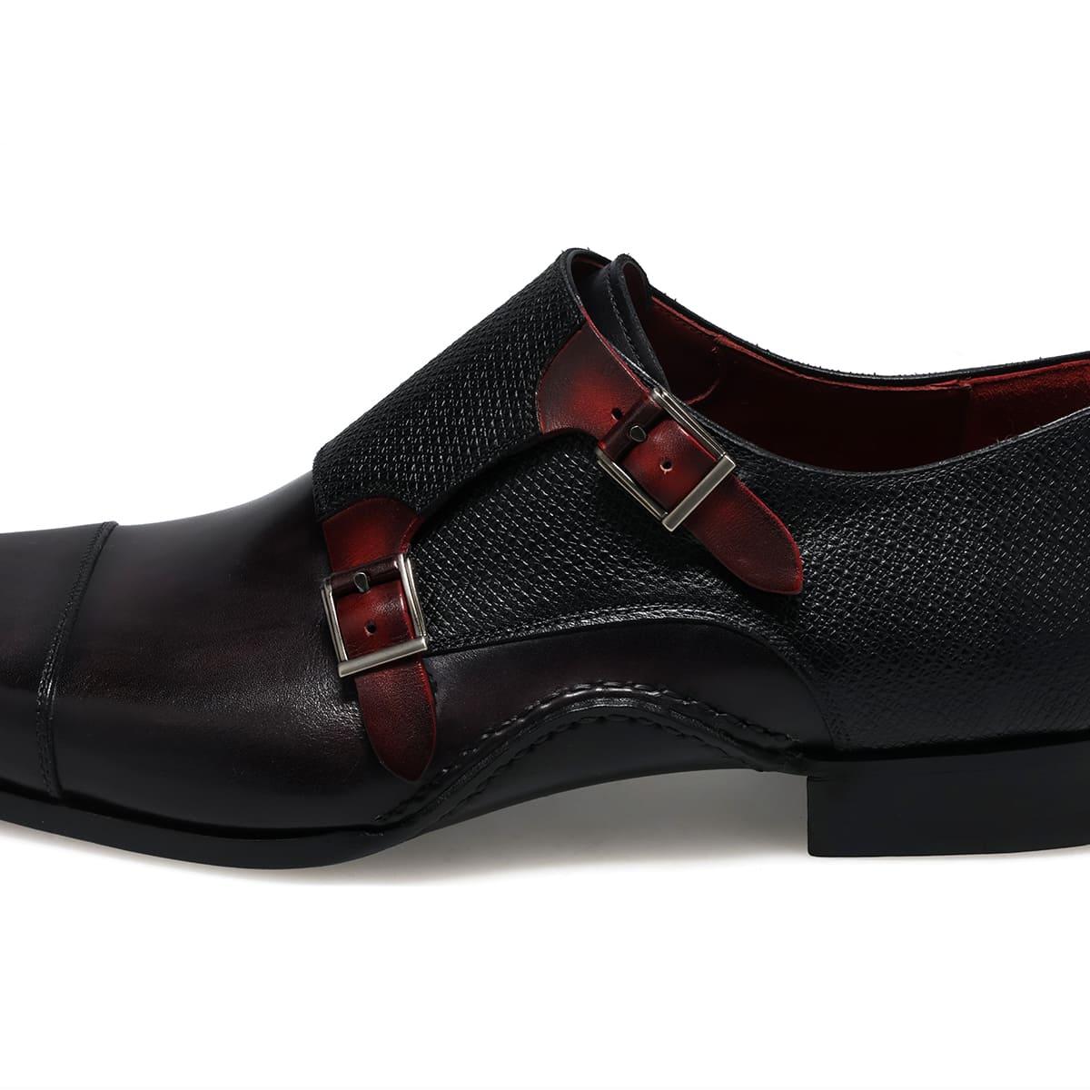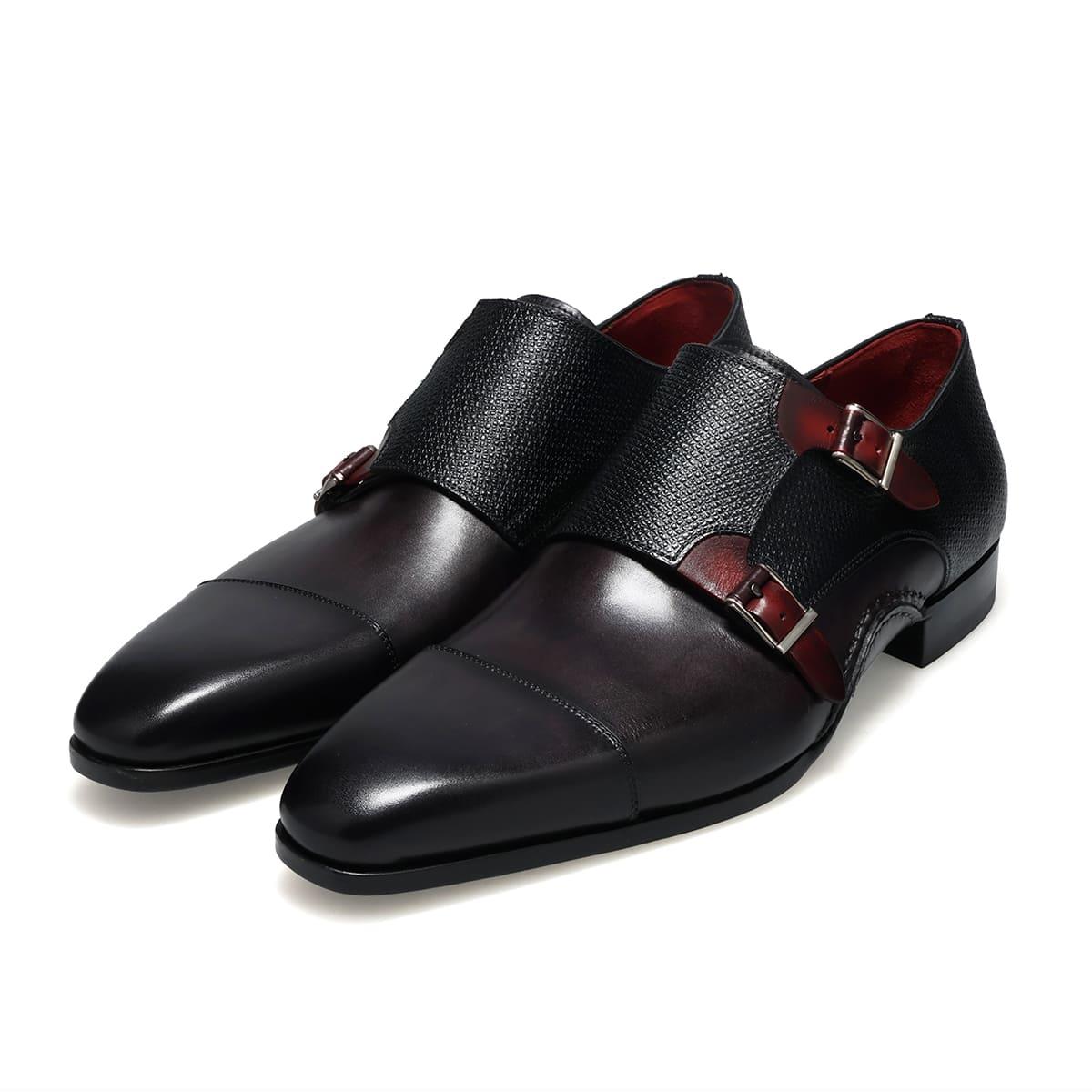 クラシックなダブルバックルに現代的なニュアンスを取り入れた、モダンでシャープなキャップトゥのダブルモンクストラップ。