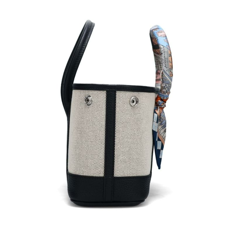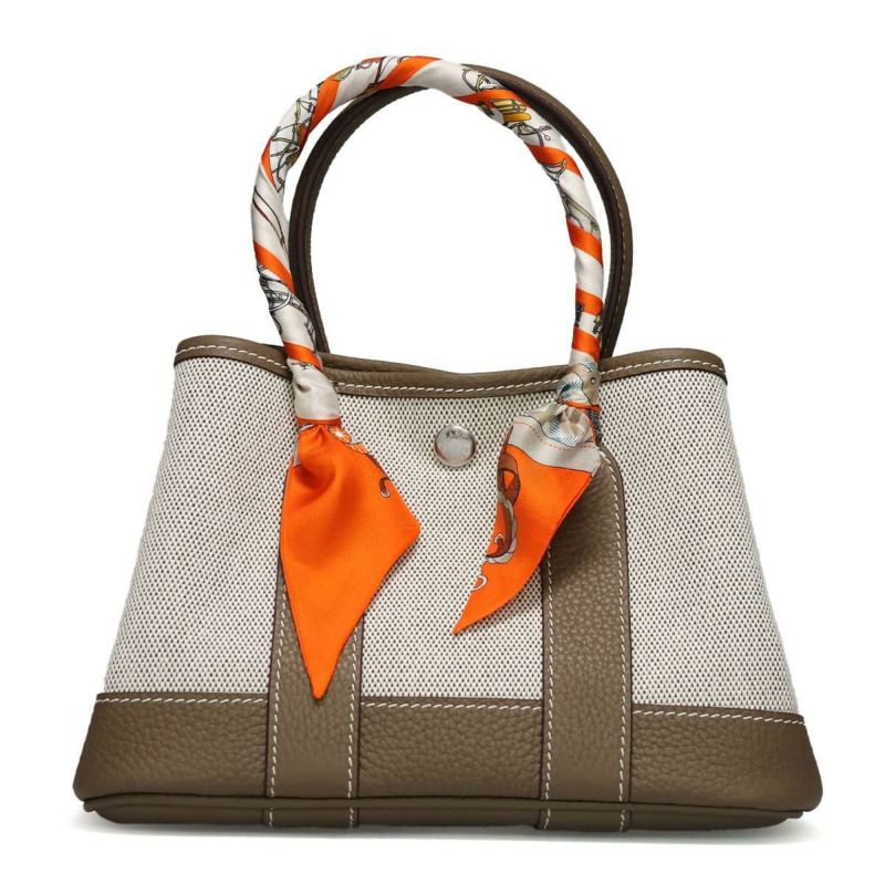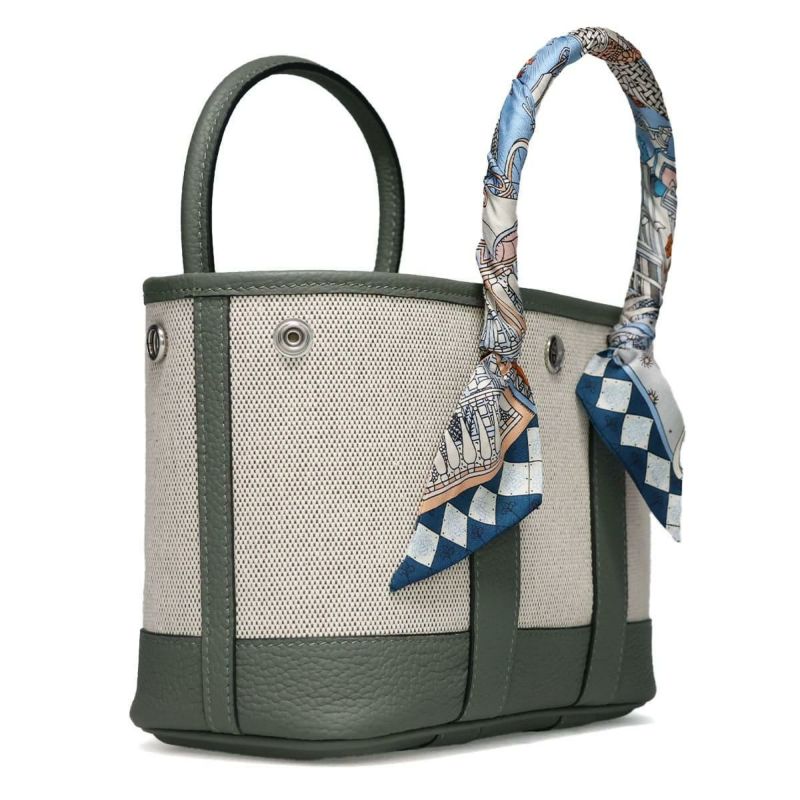 ミニハンドバッグ Mini Hand Bag 上品さと実用性を兼ね備えたコンパクトトート。 ※スカーフの色・柄についてはご指定いただけません。ご了承ください。 Detail 上質な帆布と本革を組み合わせた、スタイリッシュで実用的なミニトートバッグ。 ハンドルにはアクセントとなるスカーフが巻かれており、シンプルなデザインに華やかさを添えます。 小ぶりなサイズ感ながらもガバっと開いて荷物を入れやすく、デイリーからちょっとしたお出かけまで活躍。 サイドのスナップボタンを留めたり外したりすることで、シルエットが変わり、気分に合わせてかわいい表情を楽しめます。 Color Variation ブラック エトゥープ グリーン グレージュ ラクダ