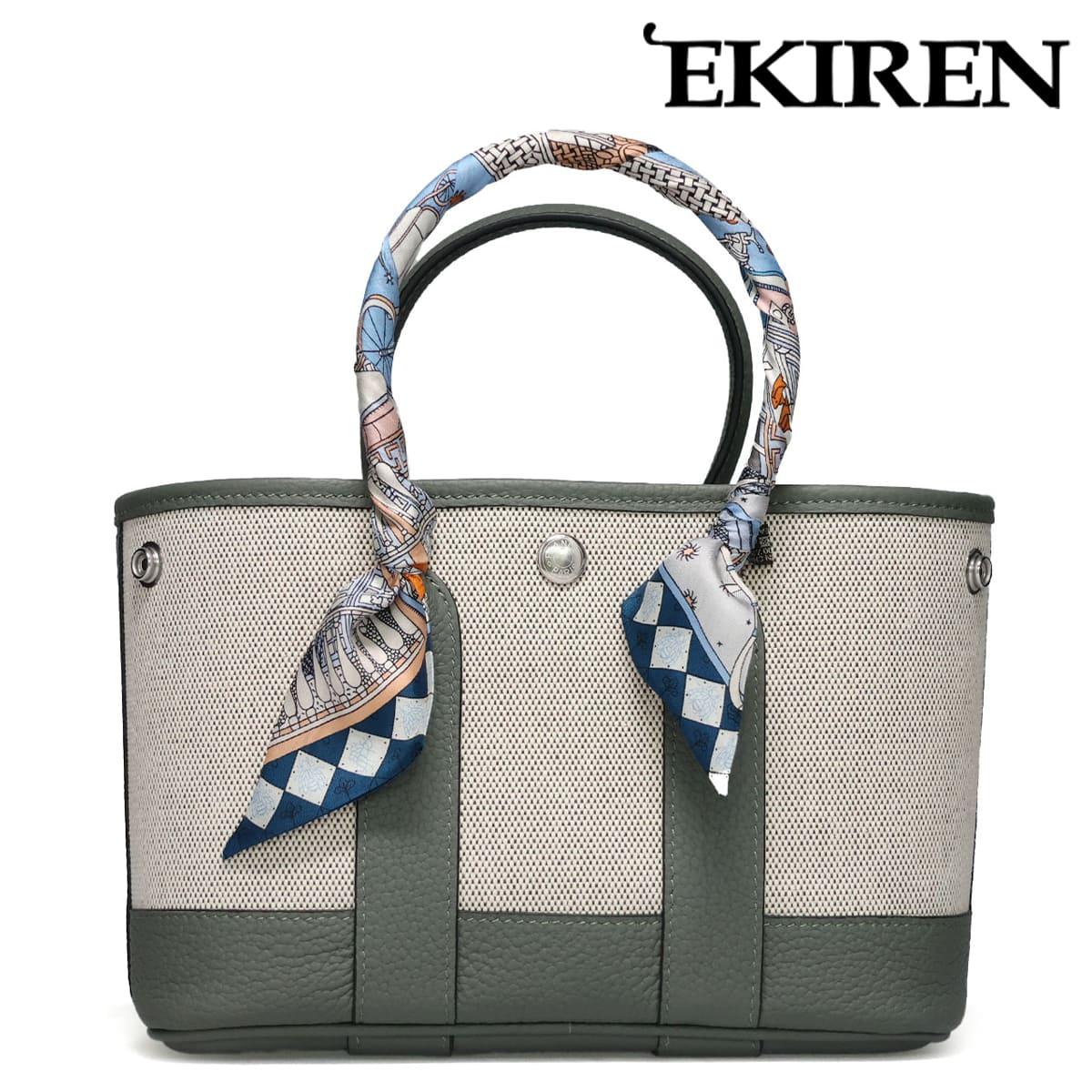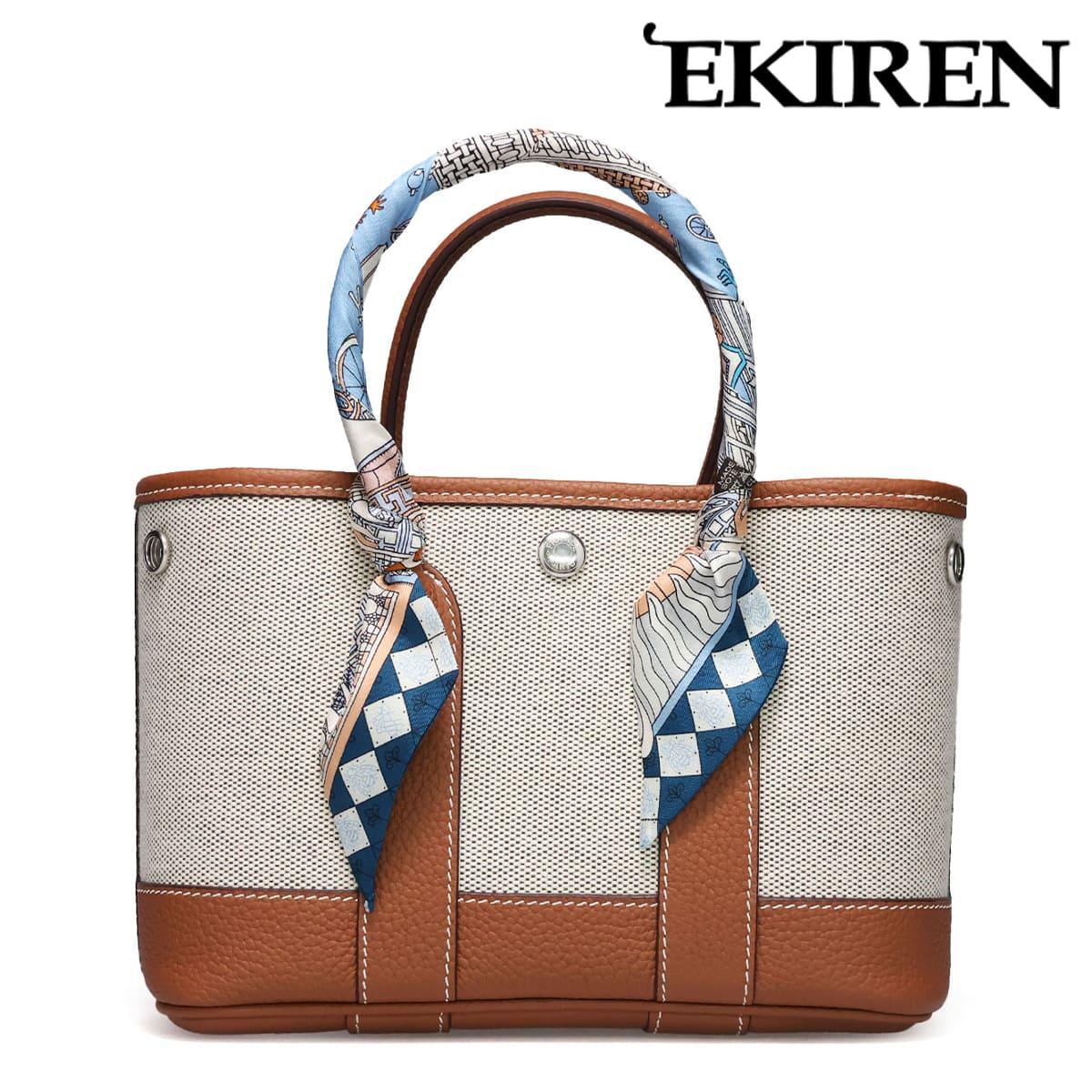 EKIREN History 兵庫県神戸市から生まれたオリジナルブランド『EKIREN(エキレン)』 熟練の職人が作り出す鞄、財布、そして小物は、選りすぐりの上質な本革、国産の姫路レザーとイタリアのTOGO革のみを使用。 繊細で器用な手仕事、そしてこだわりが込められた作品の数々は、お客様からも高い評価をいただいています。 確かな品質と散りばめられたアクセントを感じてもらいたい。 そんな気持ちを乗せて「EKIREN」は、丁寧な仕事を追求し続けます。 Item Information ▼ブランド EKIREN / エキレン Made in Japan / 日本製 ▼品番 gp-002 ▼色 ブラック エトゥープ グリーン グレージュ ラクダ ▼特徴 上質な帆布と本革を組み合わせた、スタイリッシュで実用的なミニトートバッグ。 ハンドルにはアクセントとなるスカーフが巻かれており、シンプルなデザインに華やかさを添えます。 小ぶりなサイズ感ながらもガバっと開いて荷物を入れやすく、デイリーからちょっとしたお出かけまで活躍。 サイドのスナップボタンを留めたり外したりすることで、シルエットが変わり、気分に合わせてかわいい表情を楽しめます。 ▼サイズ W25×H16×D10cm ※上記のサイズは当店での参考サイズ目安でございます。ブランドや木型によって表記サイズの寸法は異なります。 ▼素材 レザー、帆布 ▼在庫について 当店は、店頭同時販売のため、売り切れの場合がございます。 その際は、当店の都合によりキャンセルとさせて頂きますが、ご了承下さいますよう、お願い致します。 ▼その他 お使いのパソコンのモニターの状況、撮影時の状況により、写真と実際の商品の色合いが多少異なる場合がございます。入荷の際すでにお箱が多少破損したもの、汚れのあるものがございます。 摩擦や水濡れによって衣類に色移りする場合がございます。十分にご注意ください。 こちらの商品は天然素材を使用しておりますため、もともとのシワ、色むら、小さな穴等がある場合がございます。こちらは天然皮革の味であり、風合いでございますので、不良品ではございません。 ▼実店舗との同時運営に伴うご注意点 当店は実店舗との同時運営のため、試着時についた履きジワ等があることがございます。その都度ケアをしておりますが、シワが深い場合はメールにてご連絡させていただくことがございます。その際、基本的には、ご了承をいただいてからの発送とさせていただいております。あしからずご了承くださいませ。