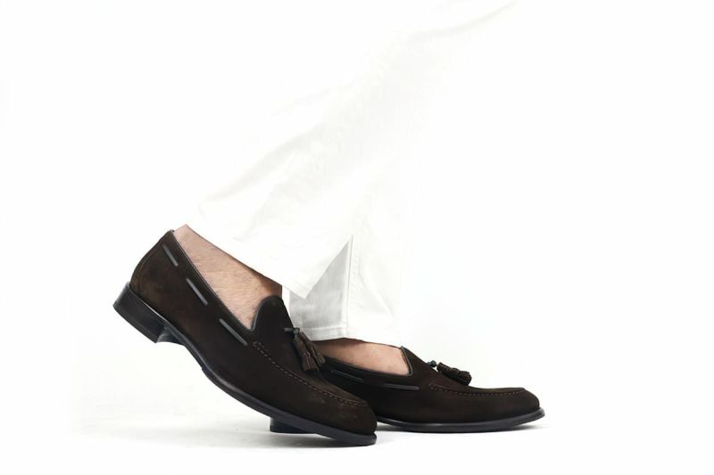 手縫いの繊細なディテールとタッセルが、計算されたスマートなフォルムと調和し、クラシックな風格に現代的な洗練を加えています。