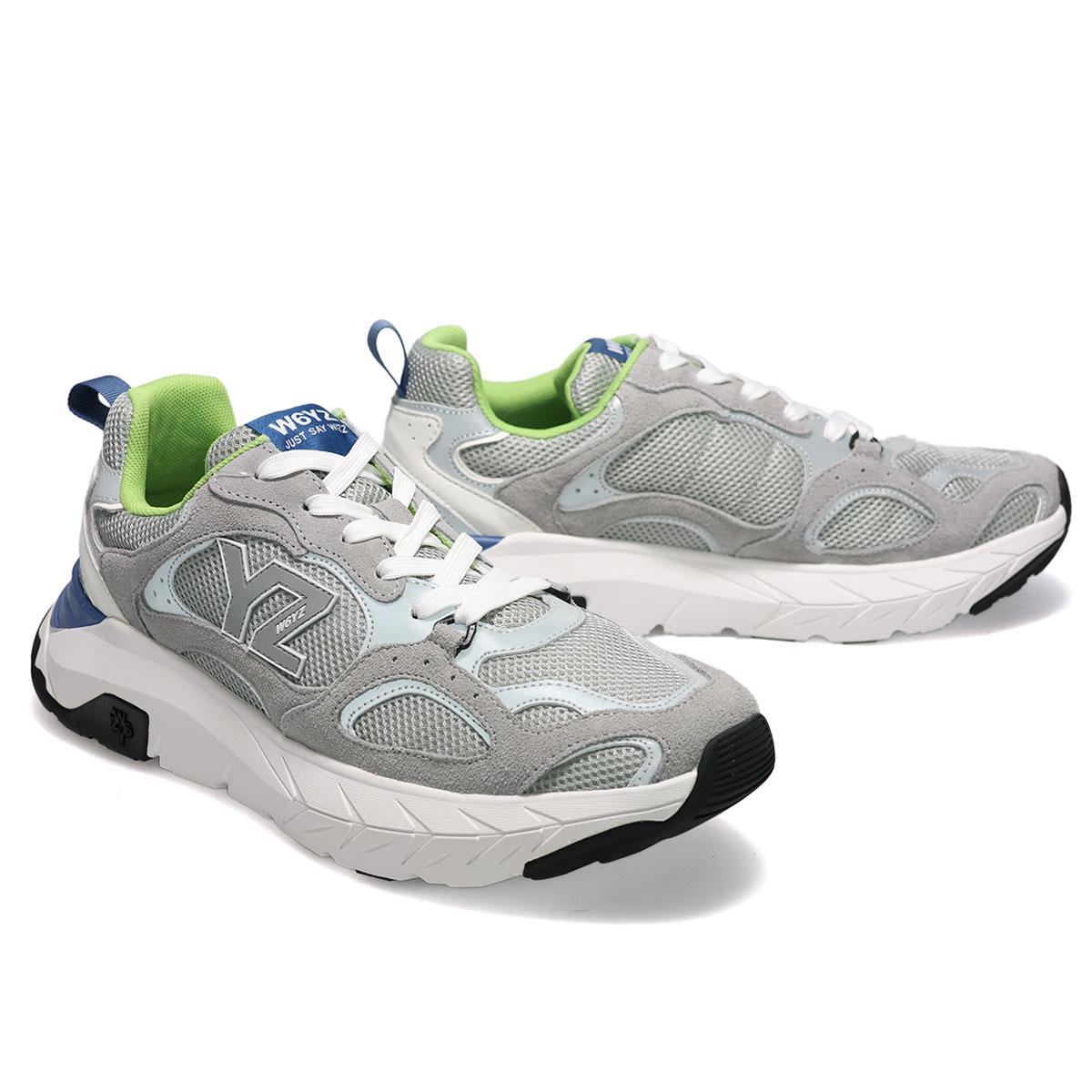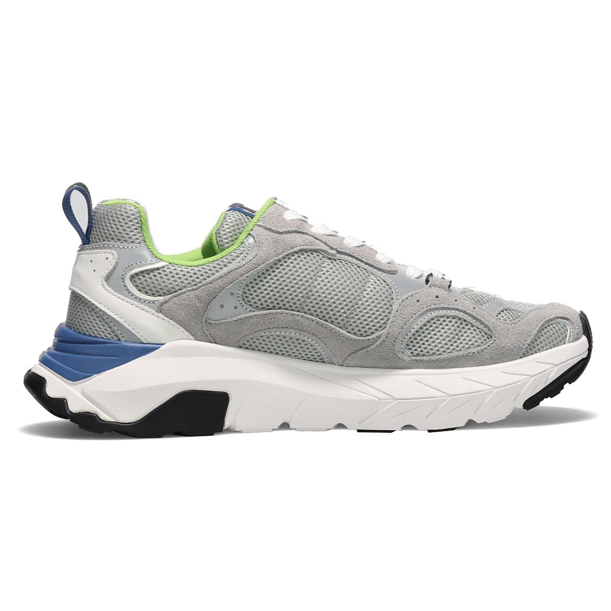 テクニカルな素材使いが、クラシックなランニングスタイルに現代的なエッセンスを加え、奥行きのある表情を生み出しています。