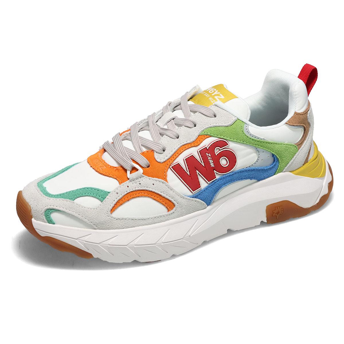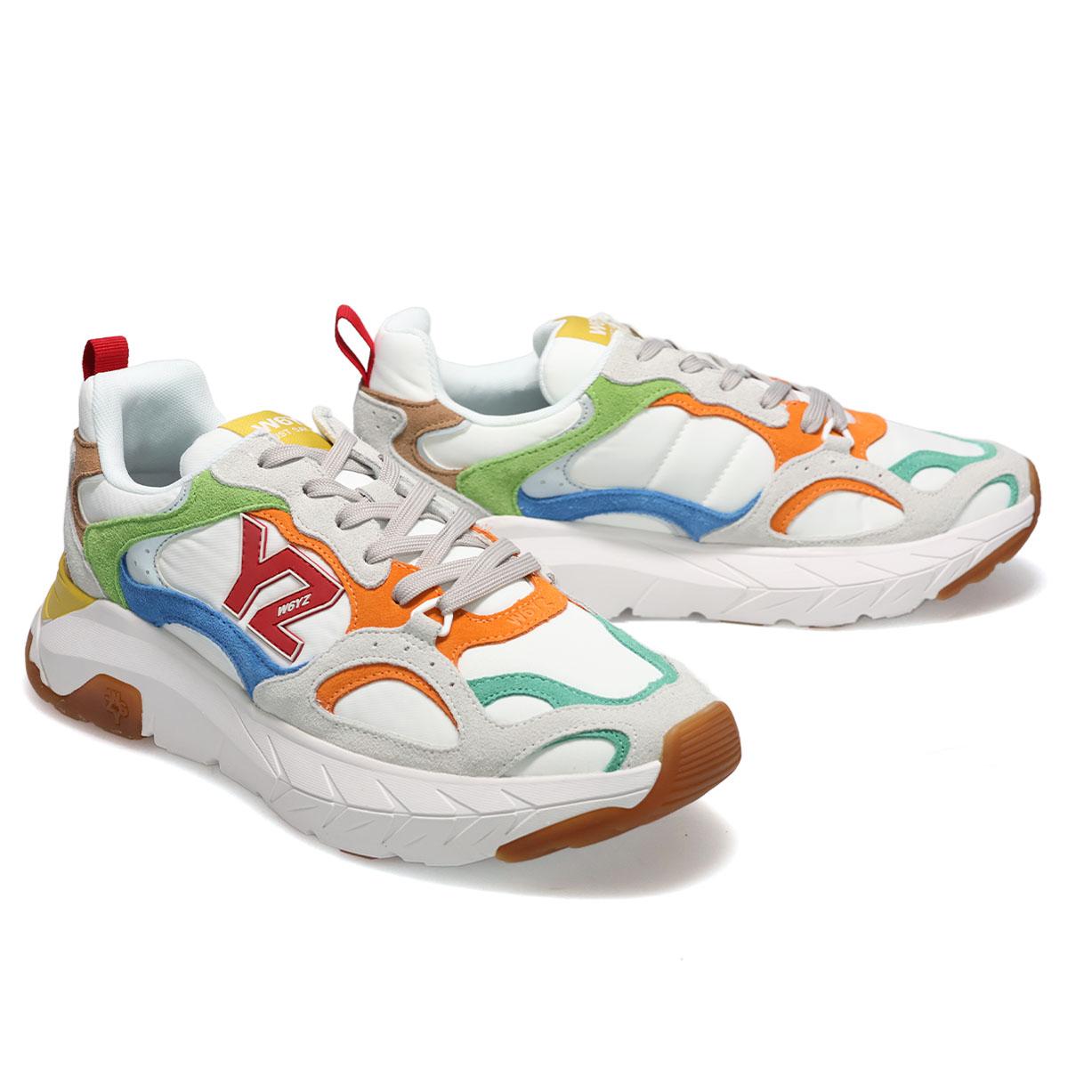 ホワイトを基調に、カラフルなカラーアクセントを効かせた配色で、足元に奥行きと遊び心を添えたデザインに仕上げています。